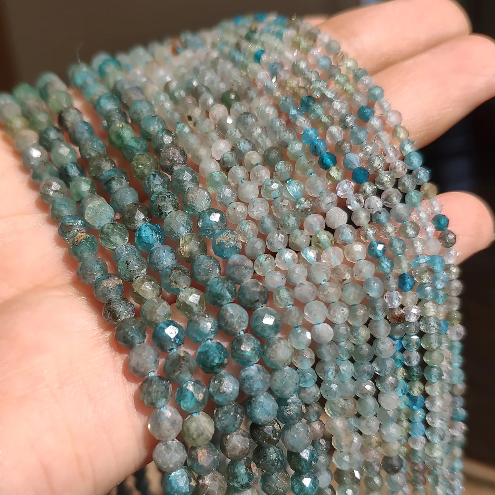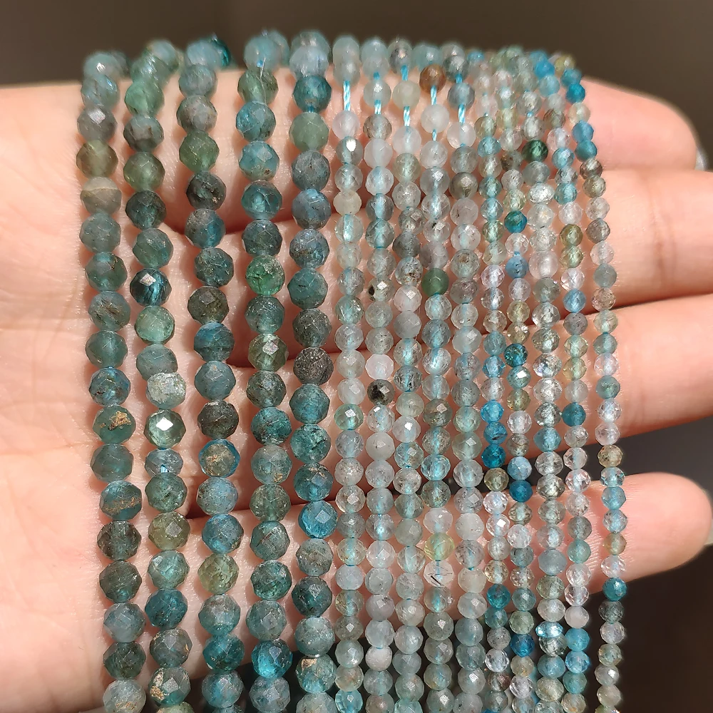 Натуральный Камень Синий Апатит камни шарик граненый Кианит круглый свободные бусины для самостоятельного изготовления украшений для изготовления украшений вручную браслет 15 дюймов 2/3/4 мм