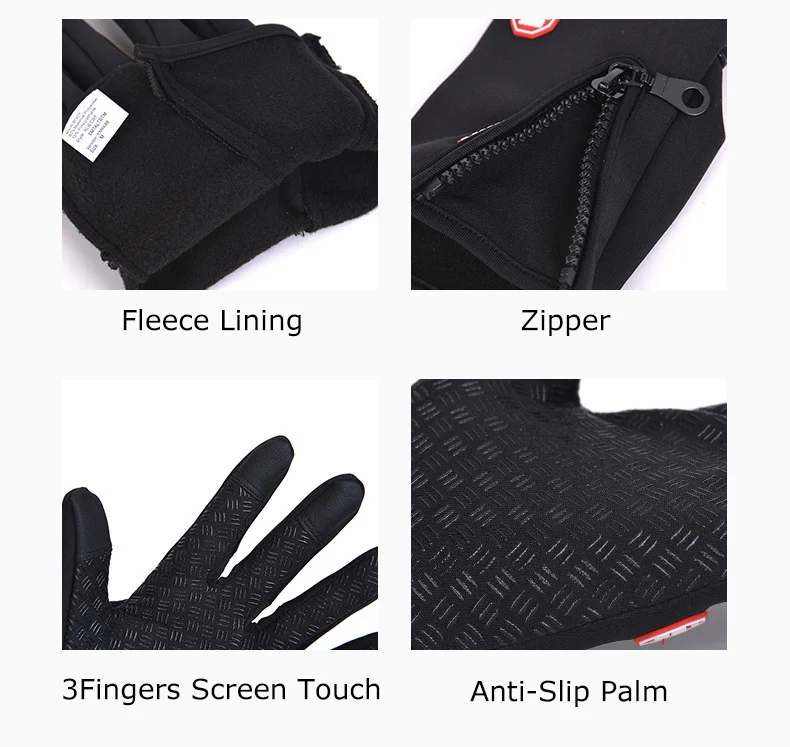 Мужские зимние водонепроницаемые флисовые перчатки на молнии с сенс...