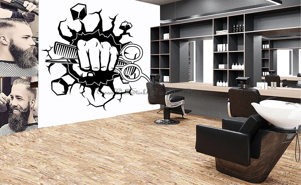 Парикмахерская, Парикмахерская, настенные Переводные картинки для мужской парикмахерской, парикмахерской, укладки волос, бороды, бритья, декоративные виниловые переводки 4