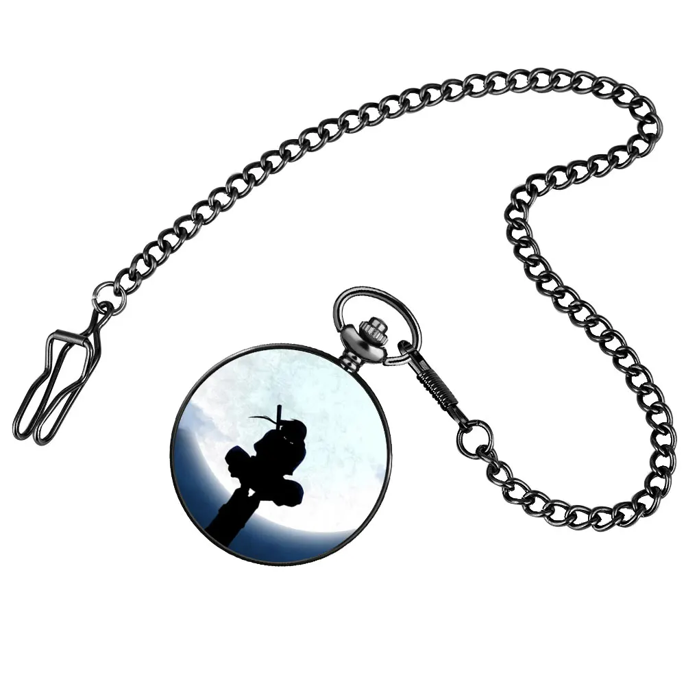 Модные мужские кварцевые карманные часы Black Shadow на Луне, классические часы с белым циферблатом, прочные толстые Подвесные часы с цепочкой, подарок для друга