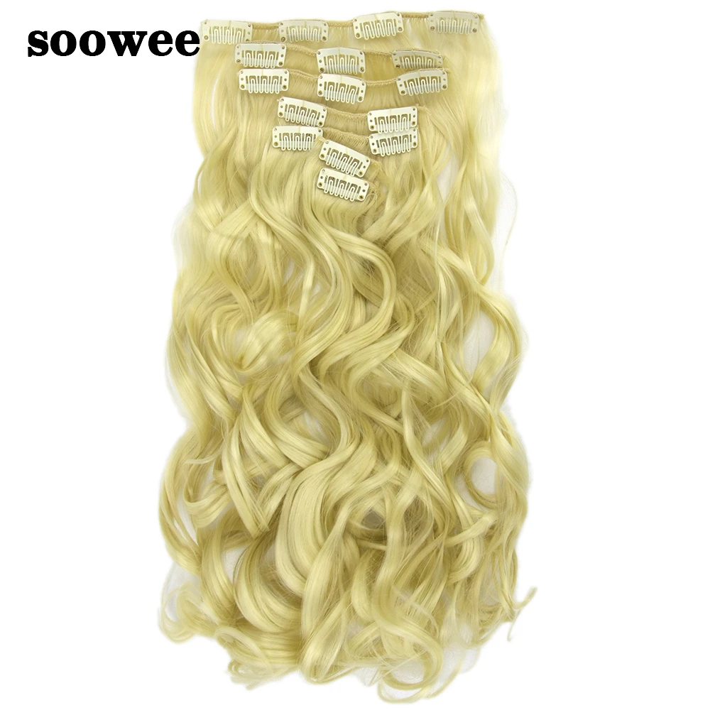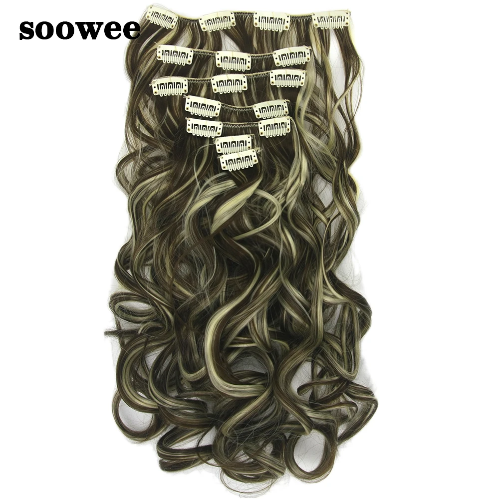 Soowee длинные кудрявые синтетические волосы на заколках черный розовый цвет блонд Омбре заколка для волос наращивание волос Aplique De Cabelo
