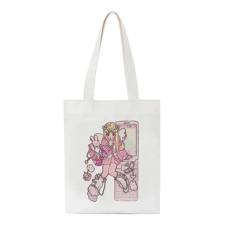 Холщовая Сумка Y2K в японском стиле аниме, милая Повседневная вместительная винтажная Женская мультяшная сумка-шоппер в стиле Харадзюку, улззанг