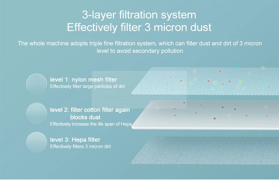 3-слойная система фильтрации эффективно фильтрует 3 микрон пыль