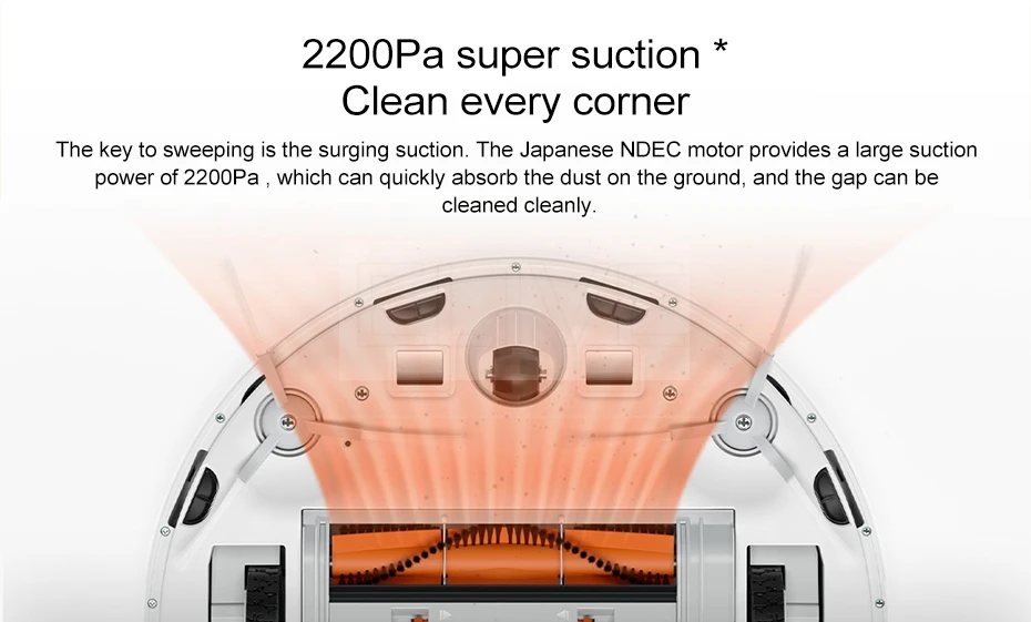 Ключом к подметанию является увеличение всасывания.(ELIVE) японский двигатель NDEC обеспечивает большую мощность всасывания 2200 па, которая может быстро поглощать пыль на земле, и зазор может быть очищен чисто