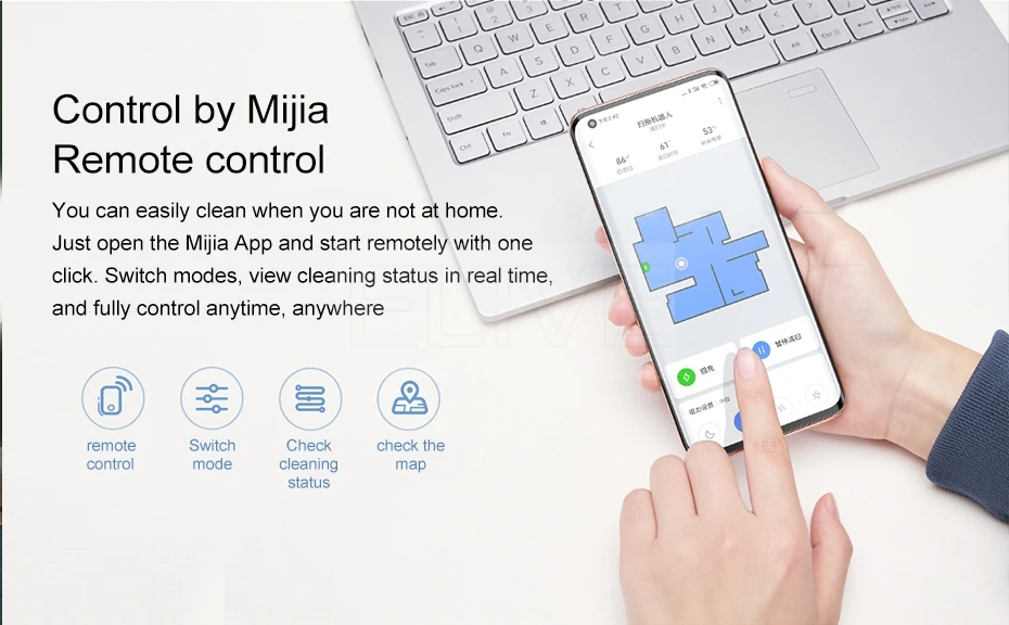 Вы можете легко очистить, когда вы не дома, просто откройте приложение Mijia и начните удаленно с одним нажатием режимов переключения, просмотреть статус очистки в режиме реального времени и полностью контролировать в любое время, в любом месте