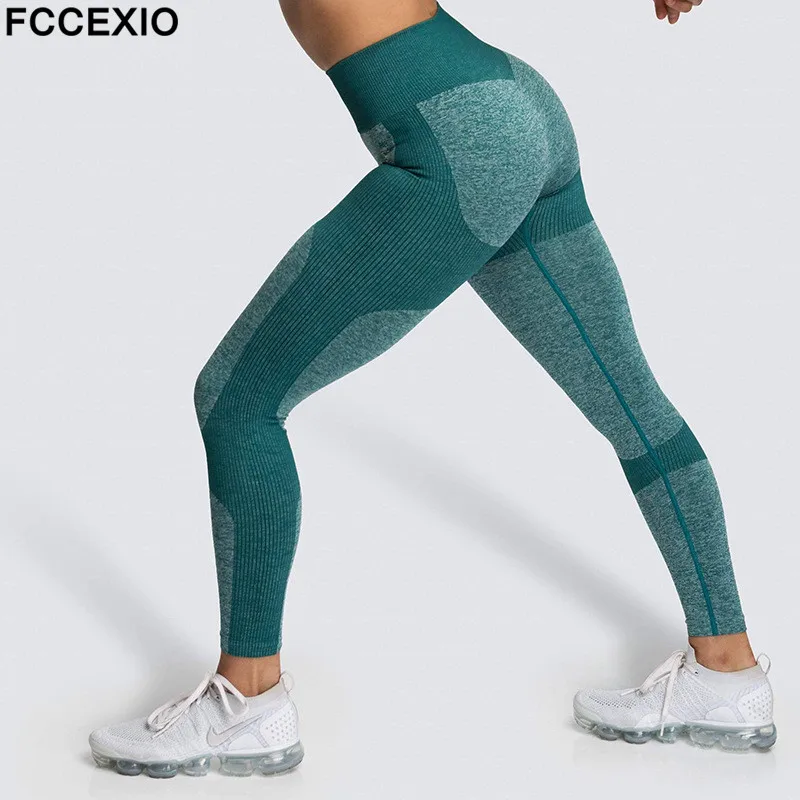 FCCEXIO спортивные Леггинсы с высокой талией, женские штаны для бега с эффектом пуш-ап, тренировки, фитнеса, тренажерного зала, пикантные облегающие бесшовные леггинсы Energy Vital