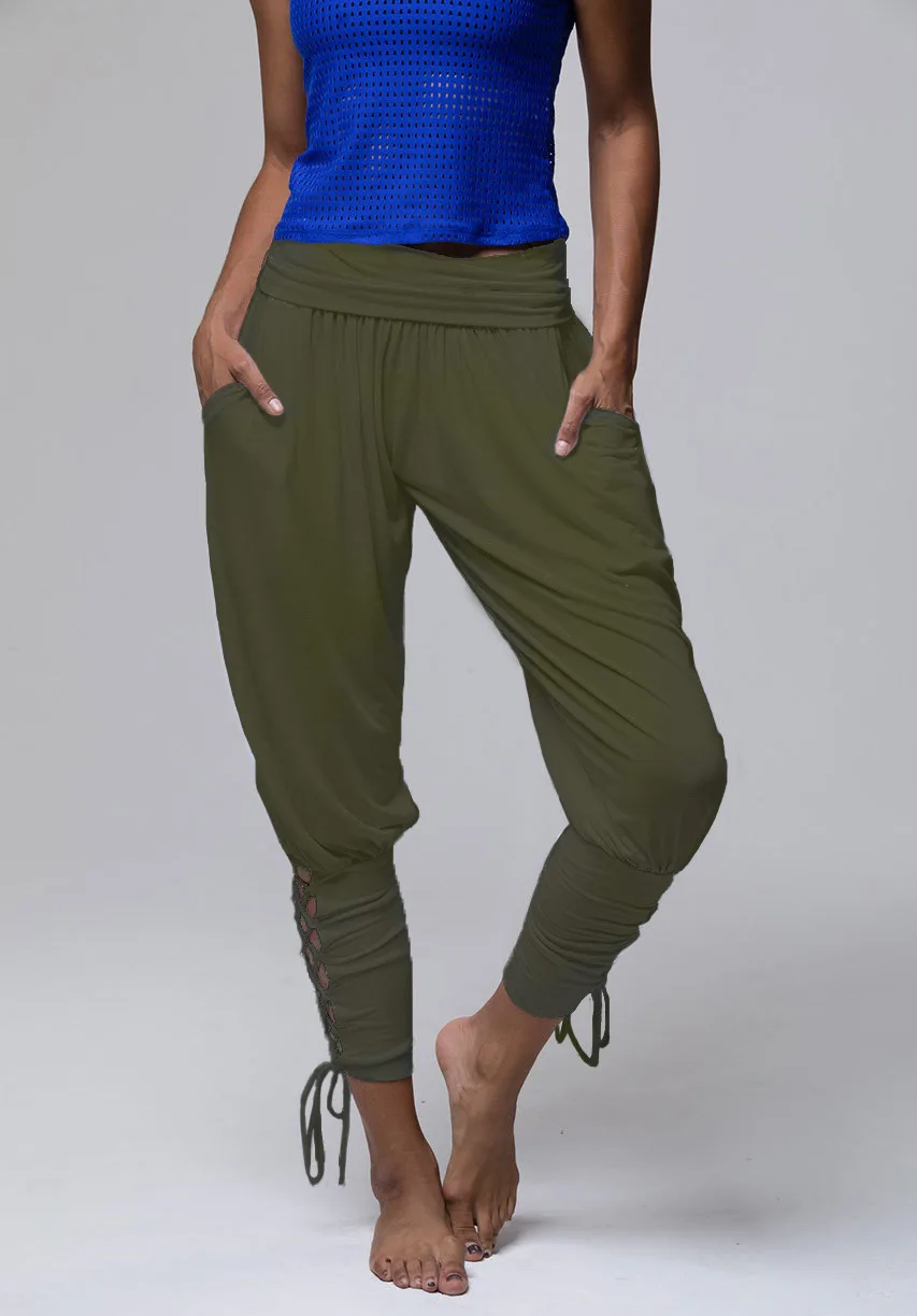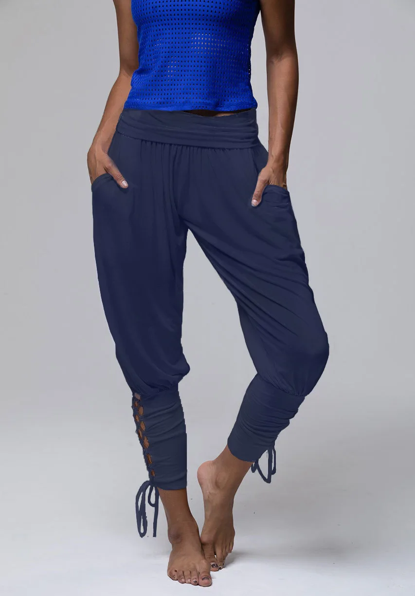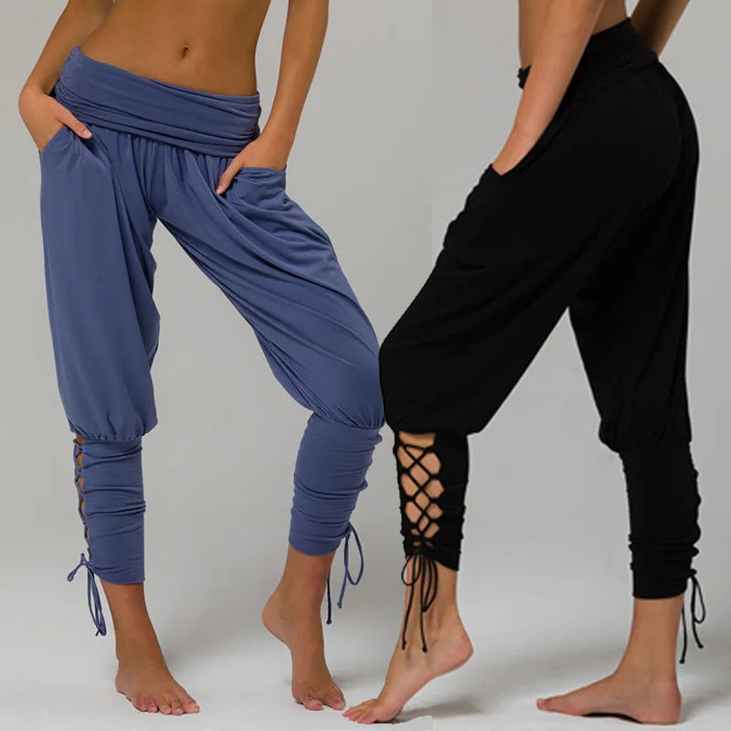 Летние женские спортивные штаны с высокой талией и карманами, леггинсы на шнуровке, спортивные брюки большого размера для бега, йоги