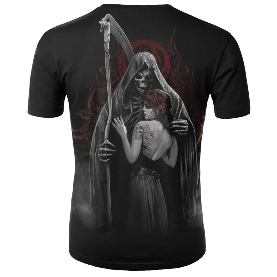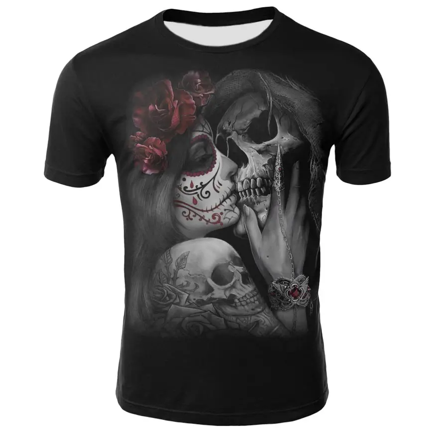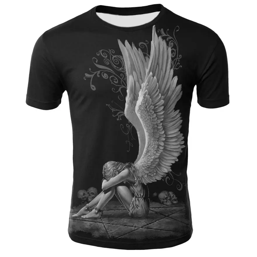 3D цифровая печать футболка с изображением ангела Панк круглый вырез черный с коротким рукавом Веселые Крылья Ангел шаблон Мужчины и женщины хип-хоп череп футболка