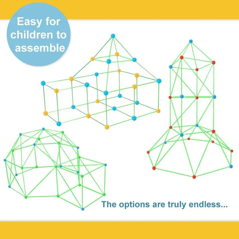 Наш набор позволяет ребенку создавать форты всех форм и размеров! Гибкая насадка для мальчиков и девочек: наши детские комплекты для строителей предназначена для детей в возрасте 5 лет и старше, они могут построить пещеру, игровую палатку, ракету, дом, иглу, замок принцессы, туннель, прорезыватель, игрушечные палатки, пиратский корабль, просто добавьте простыню для кровати, чтобы создать укрытие. Легко построить и прочный: Изготовлен из твердого и премиального пластика, просто вставьте и поверните стержни в шарики, строитель соединит за несколько секунд и легко разобрать, без структурного коллапса. Поставляется с сумкой для хранения, портативной для использования в помещении и на открытом воздухе. Искра творчества и ионизации: идеальные творческие игрушки для детей 2-3 и более. Дети работают вместе, чтобы спланировать и решить проблемы, построить различные творческие структуры, идеальные развивающие игрушки подарки на день рождения, праздник, Рождество, Хэллоуин, новый год! Номер модели: строительство форта цвет здания: зеленый и желтый Материал: пластик Размер: 150x120 см посылка содержание s: 1 Набор x DIY палатка игрушка только содержание выше посылка, другие продукты не включены. Примечание: светильник и различные дисплеи могут привести к тому, что цвет товара на картинке немного отличается от реального. Допускается погрешность в измерениях +/- 1-3 см.