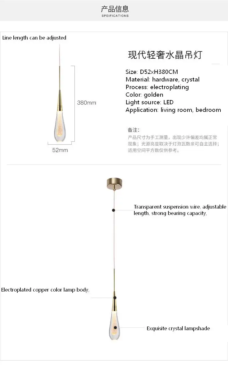Скандинавский дизайн Хрустальная люстра капля воды люстра прикроватная декоративная люстра в лобби отеля Ресторан Лофт стиль