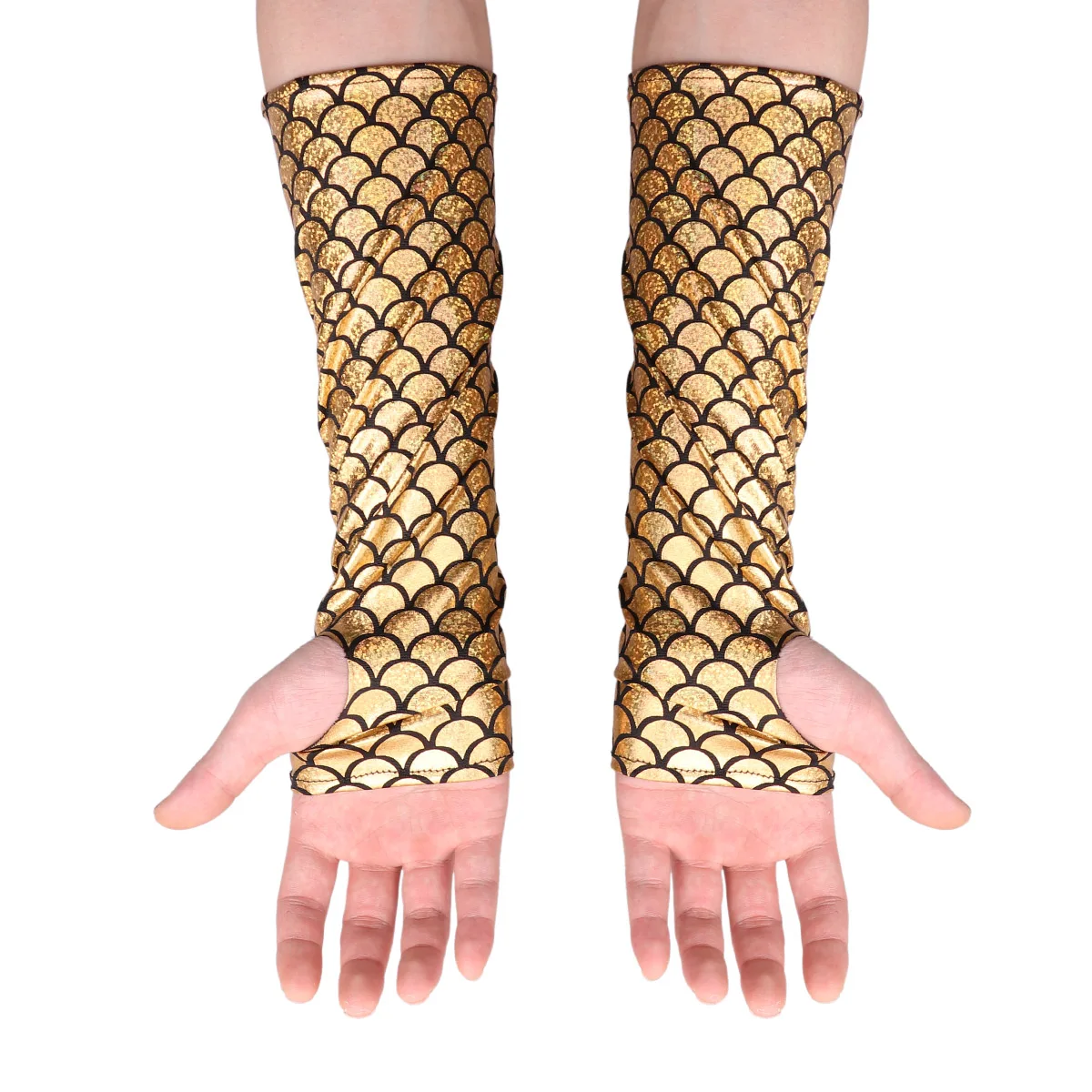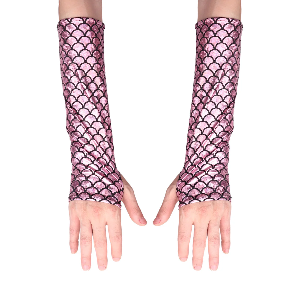 Длинные перчатки без пальцев с рисунком русалки и рыбьей чешуи для взрослых, аксессуар для костюма на Хэллоуин