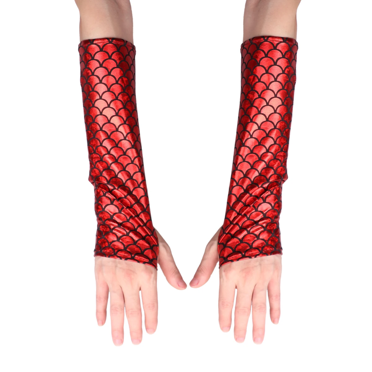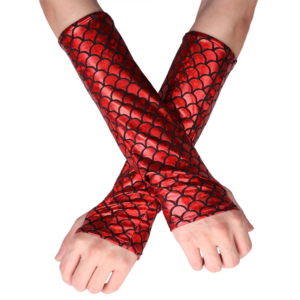 Аксессуар для костюма для взрослых на Хэллоуин с изображением русалки рыбьей чешуи женские сексуальные длинные перчатки без пальцев реквизит для фотосъемки