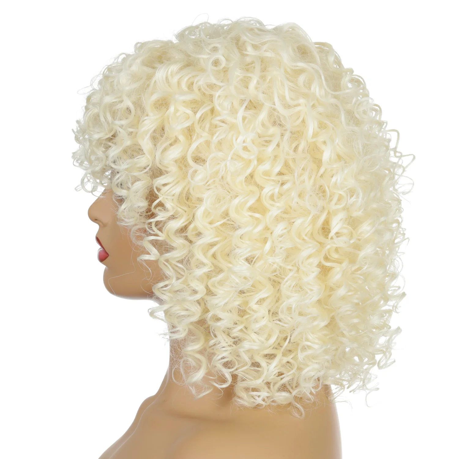 Парики синтетические короткие для чернокожих женщин, кудрявые афро кудрявые, с челкой, из высокотемпературного волокна, блонд-коричневый, 3 цвета