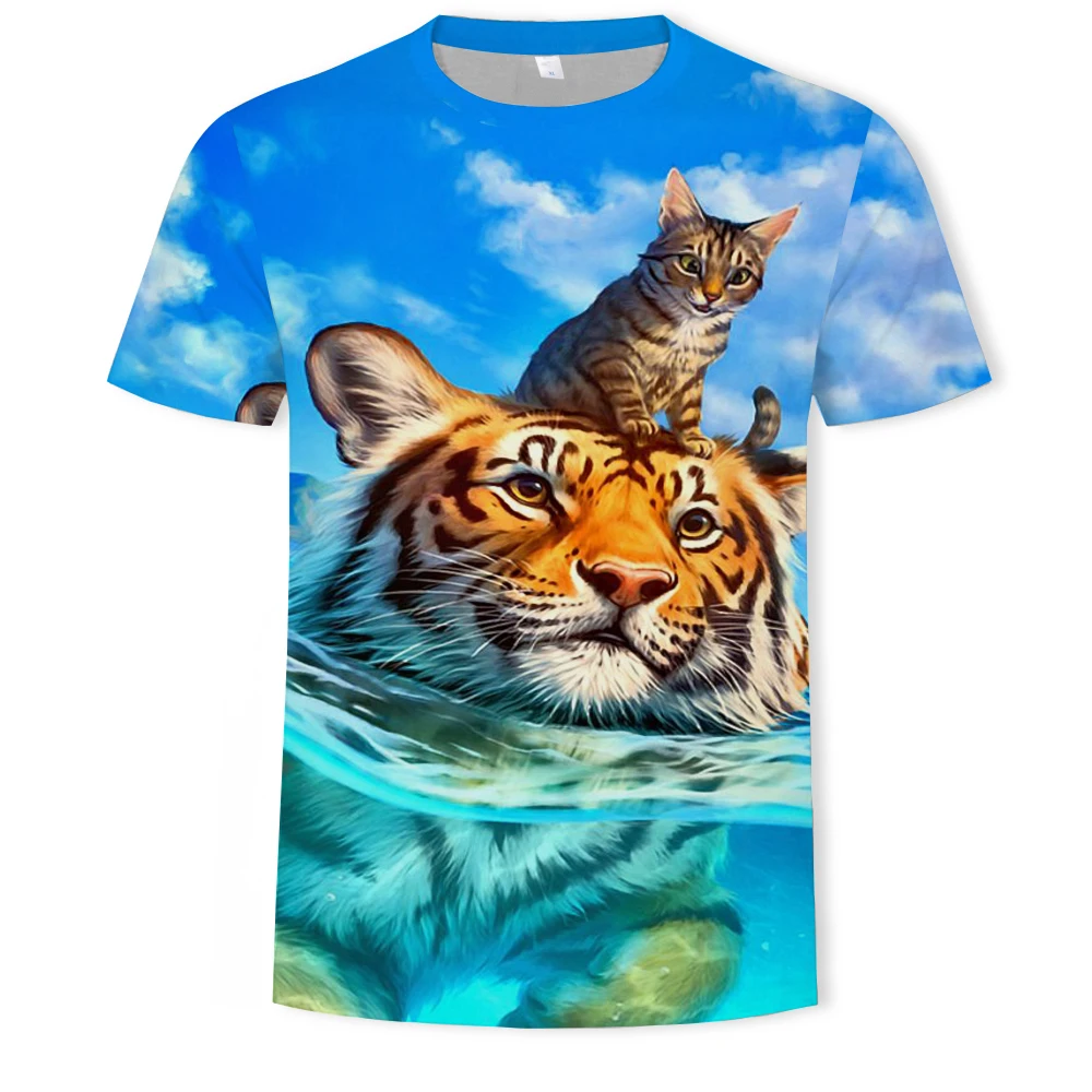 Футболка Мужскаяженская с 3D принтом тигра, модная повседневная Свободная майка с круглым вырезом, дышащая футболка в стиле хип-хоп