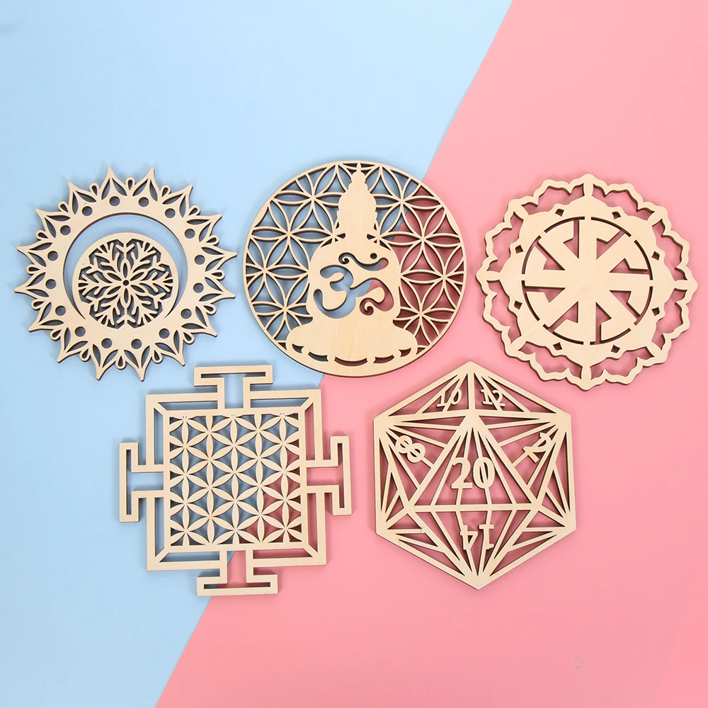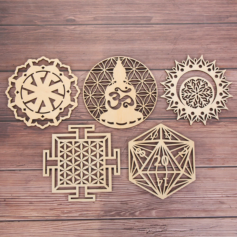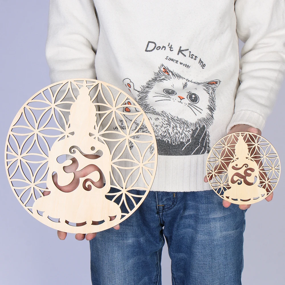 Новый натуральный цветок чакры, лазерная резка, деревянный энергетический коврик, Настенный декор, подставки ручной работы, геометрическое украшение, деревянный настенный знак