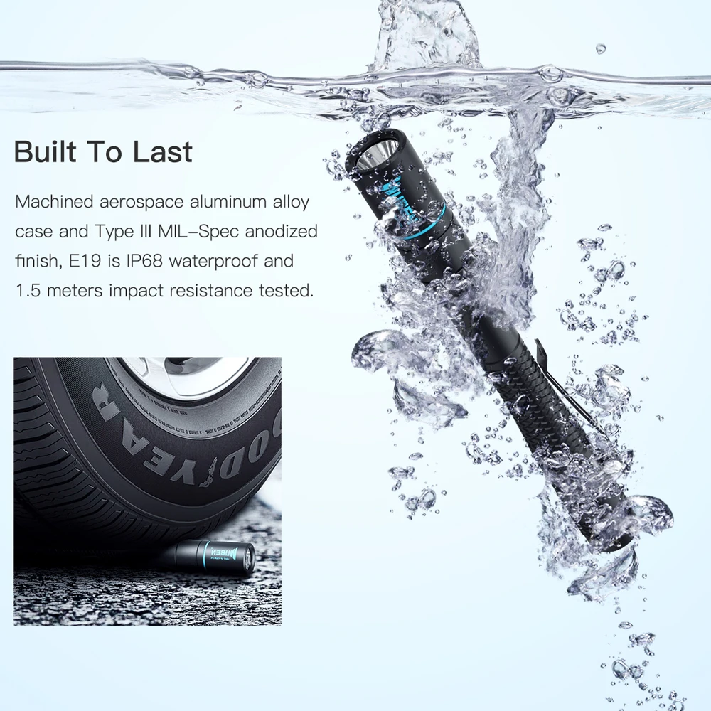 【Военный финал 】WUBEN E19 ручка EDC светильник обработан аэрокосмический класс 6061 корпус из алюминиевого сплава с анодированным покрытием типа III MIL-Spec. Для светильник головы, E19 использует металлическая шпуля, японский бренд NICHIA СВЕТОДИОДНЫЙ и двойными бортами покрытием закаленное стекло для лучшего светильник ing проникновение. И в нем есть IP68 водонепроницаемый рейтинг и 1,5 м ударопрочность, более прочная и долговечная конструкция.