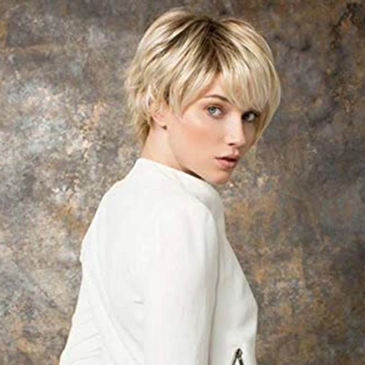 Парики Для женщин короткие прямые волосы синтетический натуральный светильник золотой парики Косплэй ежедневно Применение Термостойкое волокно полные парики
