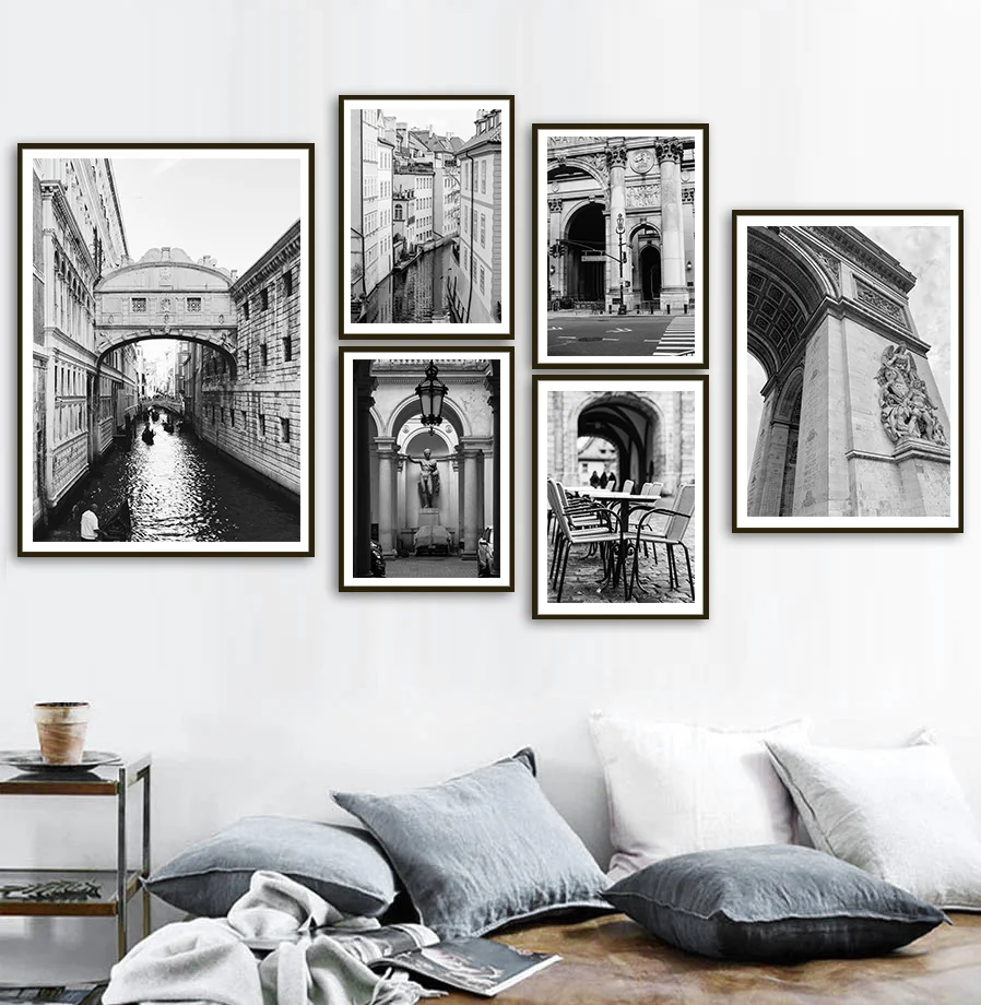 Настенные картины с изображением башни Парижа, берега Амальфи, чайк...