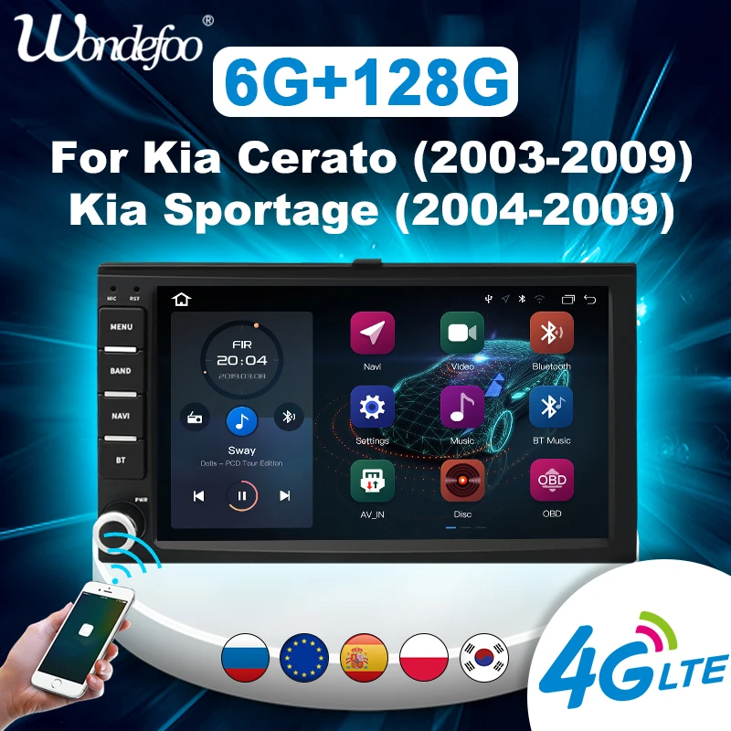 Carplay магнитола 2 din андроид 2 din Android 10 автомагнитола радио для Kia Cerate Sportage 2003-2009 Авто стерео Авторадио 7 дюймов мультимедийный плеер навигация GPS