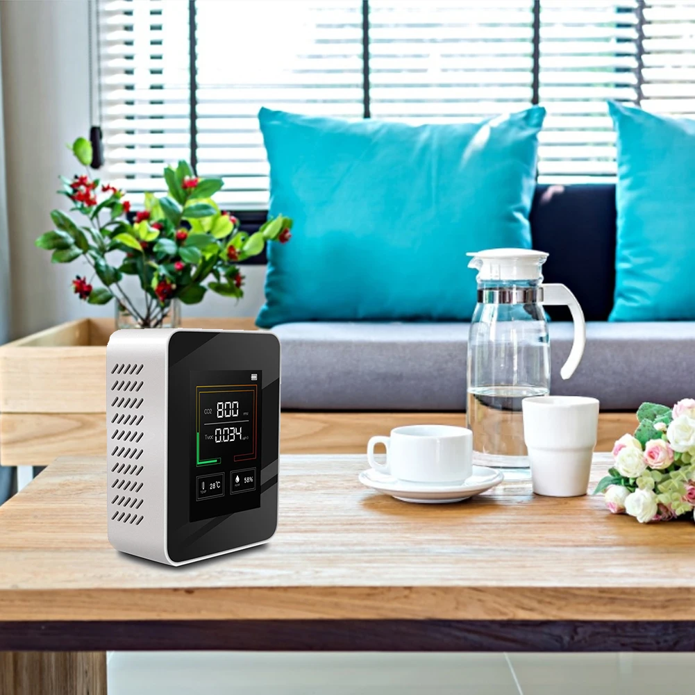 * 2. Питание от перезаряжаемой литиевой батареи, монитор качества воздуха позволяет легко снимать измерения из одной комнаты в другую, чтобы получить обзор качества воздуха в доме, на рабочем месте, в школе, детский сад или в любом другом месте.