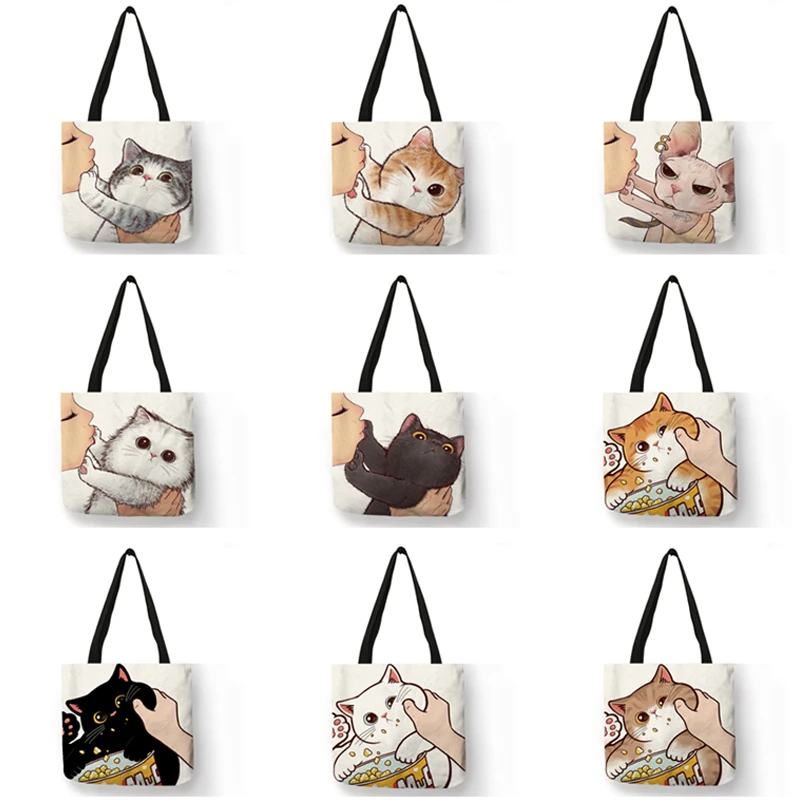 Креативная Льняная сумка-тоут с принтом кота для объятий, экологиче...