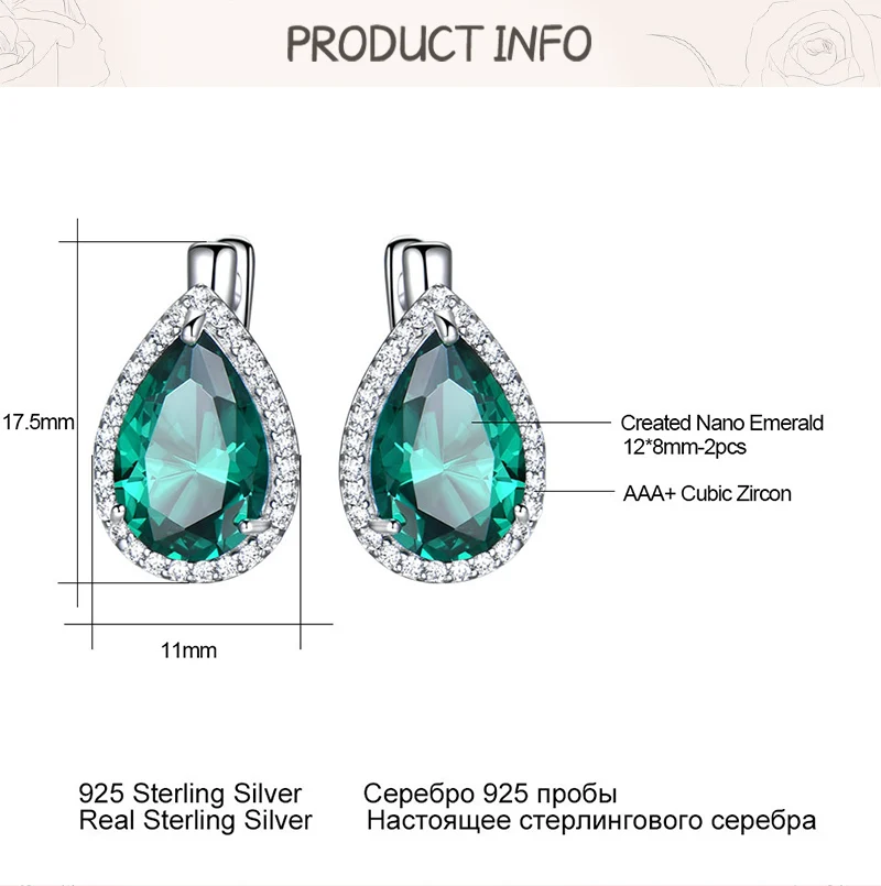 UMCHO зелёный Изумрудный камень, клипсы, серьги из стерлингового се...
