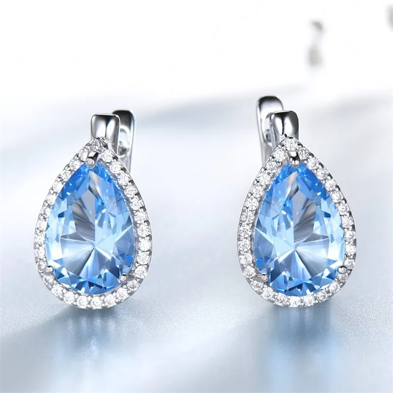 Серьги-клипсы женские из серебра 925 пробы с голубым топазом