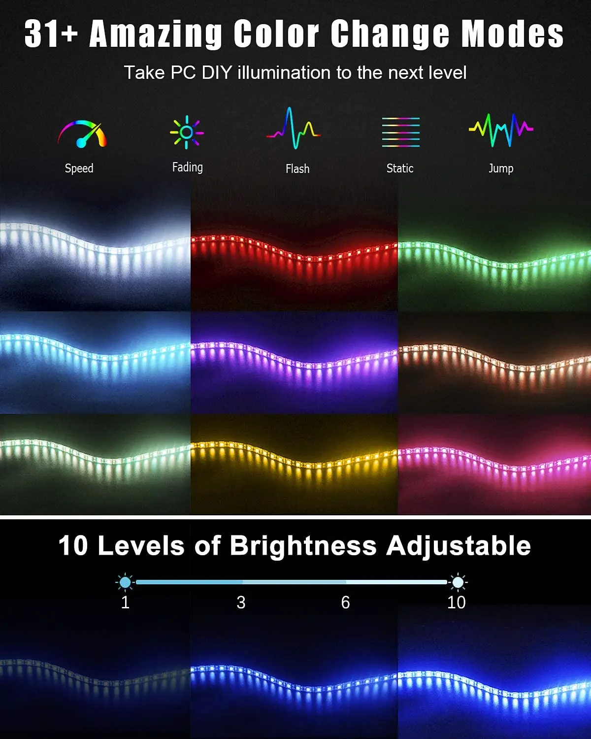 ОсобенностиЧейз влияет на светодиодные полосы света: встроенный контроллер IC, различные цвета и различная яркость меняются одновременно в линии, выглядит как различные цветные светодиоды чеканка, пропуск, танцы мерцаниеСветодиодный светильник цвета радуги с радиочастотным пультом дистанционного управления: сигнал на 360 градусов, Дистанция управления до 300 различных погрешностей влияет на династический режим и 7 популярных твердых цветовПростота в использовании: гибкие светодиодные полосы могут быть отрезаны и расширены, задняя часть светодиодных лент поставляется с сильным клеем, легко устанавливается. IP65 Водонепроницаемый безопасный для использования в помещении на открытом воздухе, очень низкое тепло, сенсорный и безопасный для детейМногоцелевой светодиодный светильник s: отличная идея для ТВ-светильник, светильник для шкафа, декорированная мебель, спальня, бар, клуб и Ресторан украшения, и для вечерние, Рождество, Хэллоуин, и любой творческий DIY