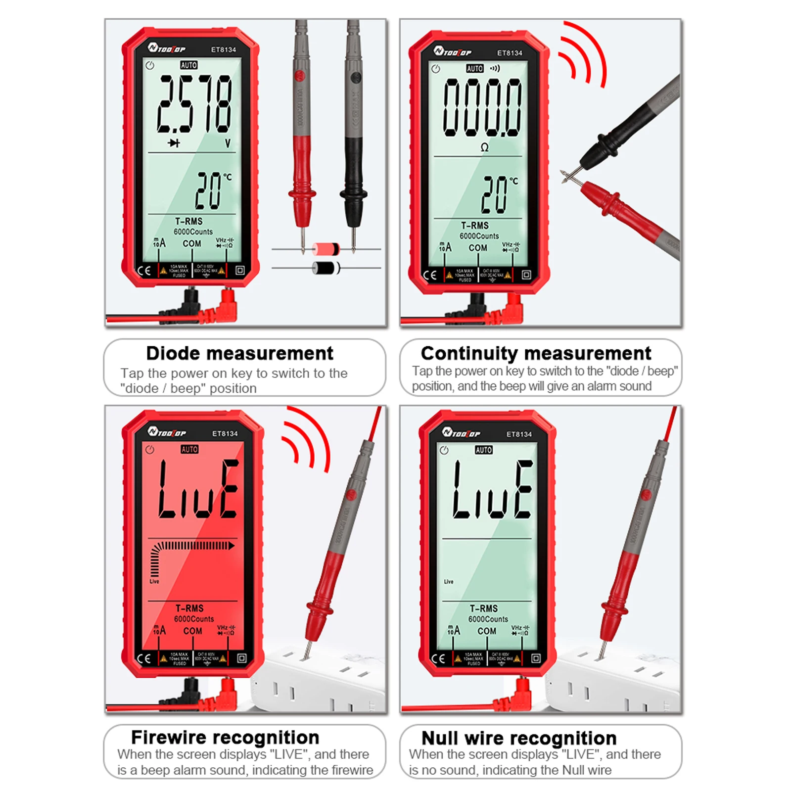 Этот мультиметр с большим ЖК-экраном, и он маленький по размеру, как фаблет, более практичный и новый. С многофункциональными, такими как напряжение переменного тока, напряжение постоянного тока и Измерение тока, сопротивление, емкость, измерение диодов и так далее. Приходите и попробуйте, это не подведет вас.Особенности:С 4,7 дюймов экран высокой четкости, который позволяет вам управлять и смотрите данные более четко, даст вам лучший опыт использования.Многофункциональный: он используется для измерения напряжения переменного и прямого тока и тока, измерения емкости и сопротивления, бесконтактного напряжения и измерения температуры NCV, измерения диодов и непрерывности, распознавания проводов firewire и null.С функцией двойного звукового сигнала и светильник, который поможет вам лучше напомнить.С мягкой и прочной защитной крышкой и функцией сейсмического pro-tection, которая может защитить мультиметр и продлить время обслуживания.С функцией фонарика и подсветки вы можете использовать его в условиях тусклой освещенности или в темноте.Характеристики:Материал: АБС-пластикЦвет: красныйМощность: 2 аккумулятора * AAA (не входит в комплект)Постоянный ток: 10AТок переменного тока: 10AНапряжение прямого тока: 600 ВНапряжение переменного тока: 600 ВСопротивление: 600Ω ~ 60MΩЕмкость: 6nF ~ 60mFЧастота: 0,1 Гц ~ 1 ГцТемпература: -40 ℃ ~ 1000 ℃/-40 ℉ ~ 1832 ℉Диод: 1 вЗуммер: 1ΩРазличие между огнем: ДаNCV: ДаПодсказка низкого напряжения: ДаАвтоматическое выключение: ДаT-RMS: ДаПодсветка: ДаСохранить дату: ДаФонарик: ДаРазмер изделия: 143*77,5*23 мм/5,6*3,1 * 0.9inРазмер посылка: 153*87,5*30 мм/6,0*3,4 * 1.2inПосылка Вес: 339 г/12,0 унцииУпаковочный лист:1 * мультиметр1 * Руководство пользователя1 * Температурный кабель1 * TestHead