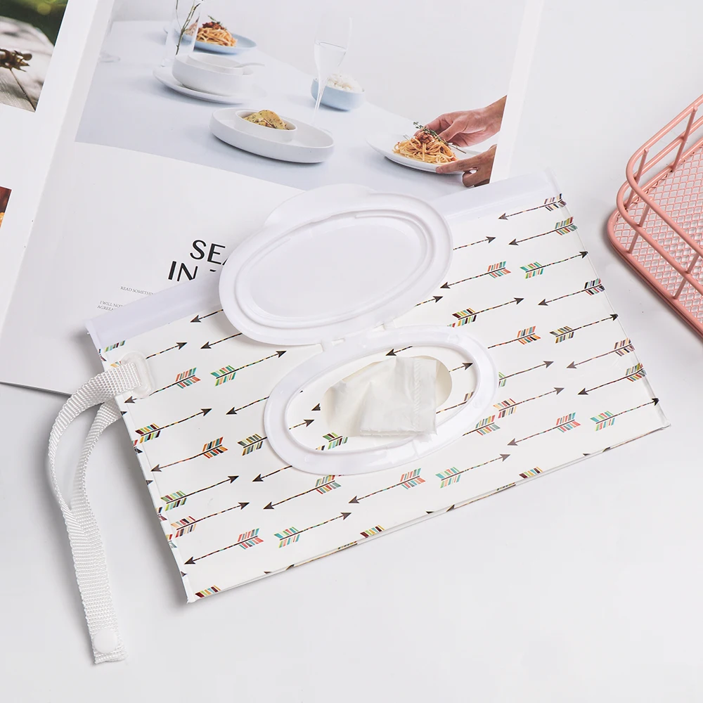 Косметичка, портативный раскладной контейнер для влажных салфеток с принтом для ухода за ребенком, чехол с защелкой и ремешком, контейнер для чистящих салфеток, многоразовая сумка для переноски