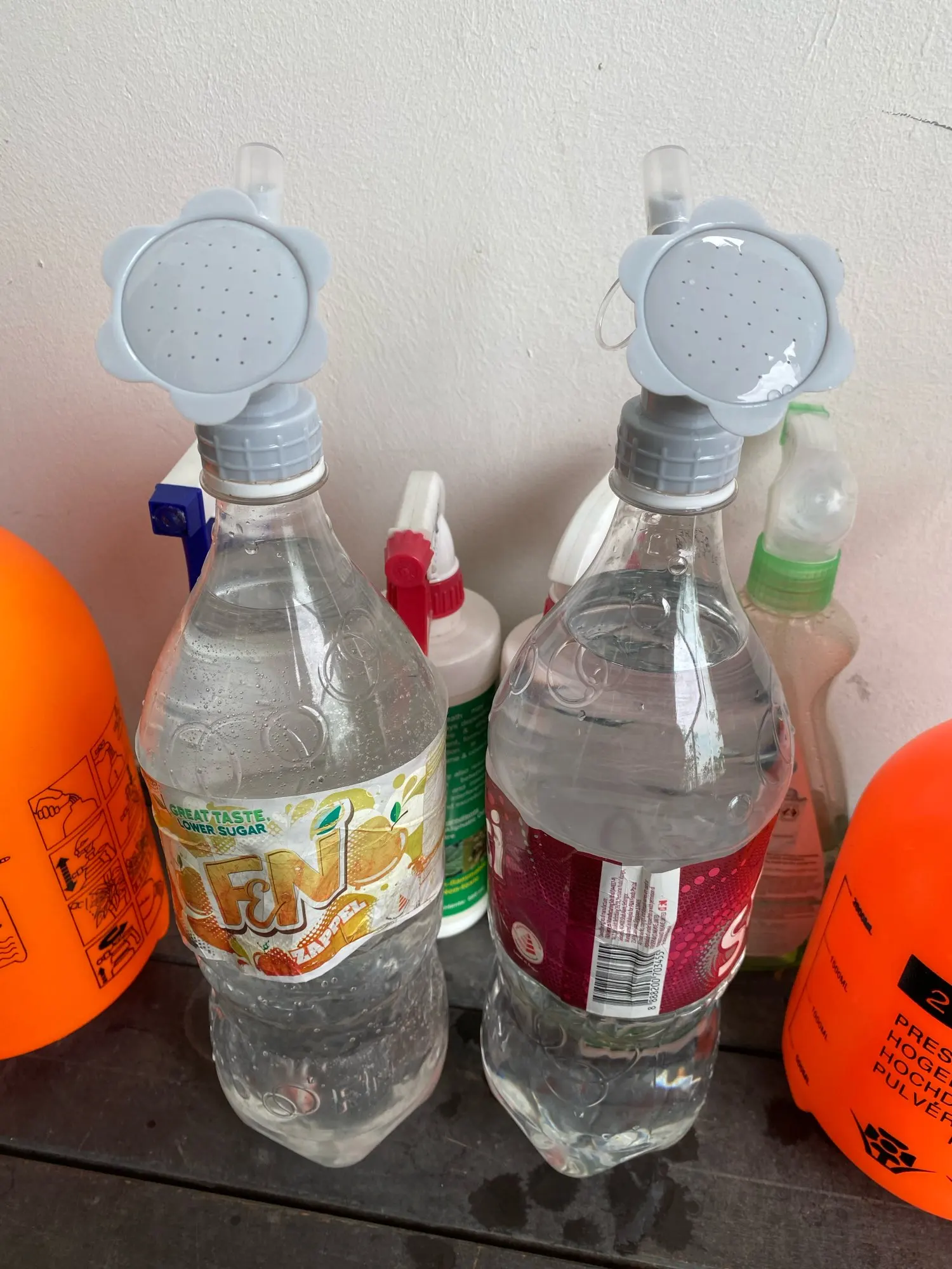 Полив роз, которые просто прикручиваются к старым пластиковым бутылкам