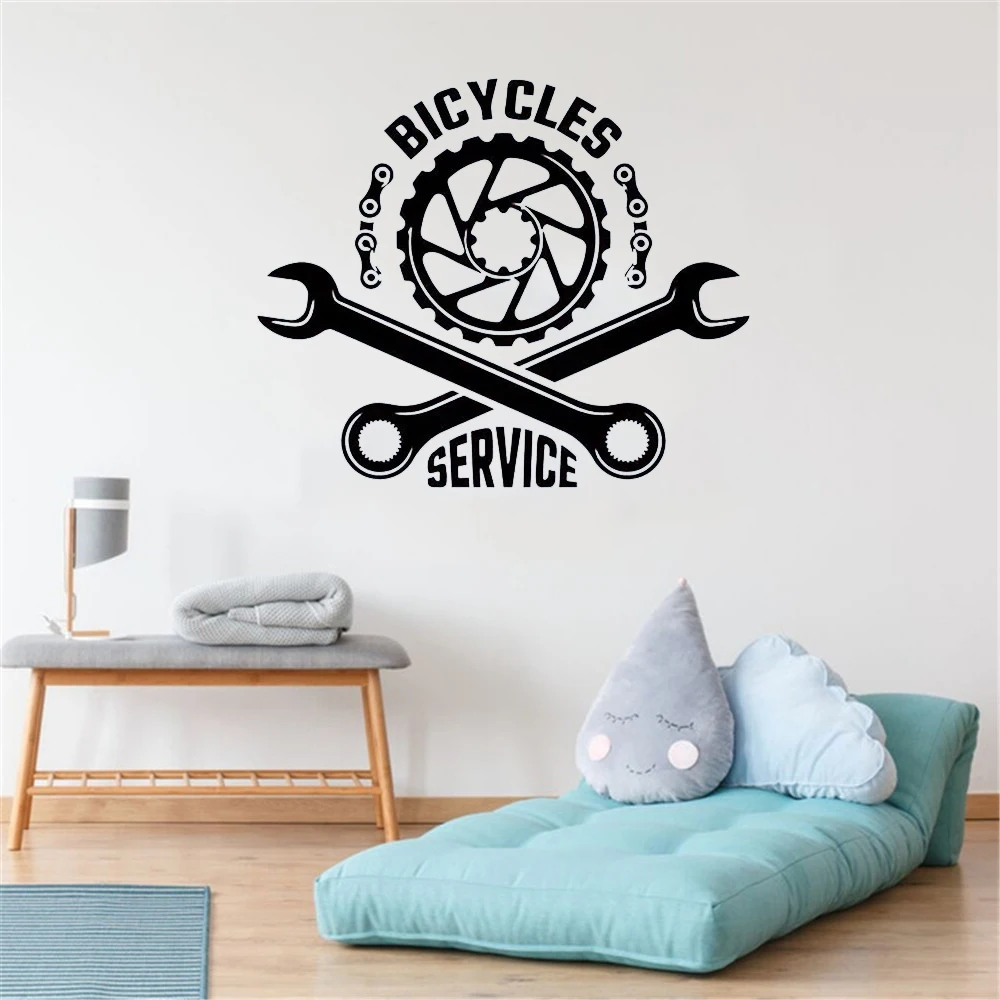 Магазин велосипедов наклейка на стену Фристайл Байк Спорт Инструменты для ремонта мотоцикла интерьер дома украшения окна росписи Стикеры