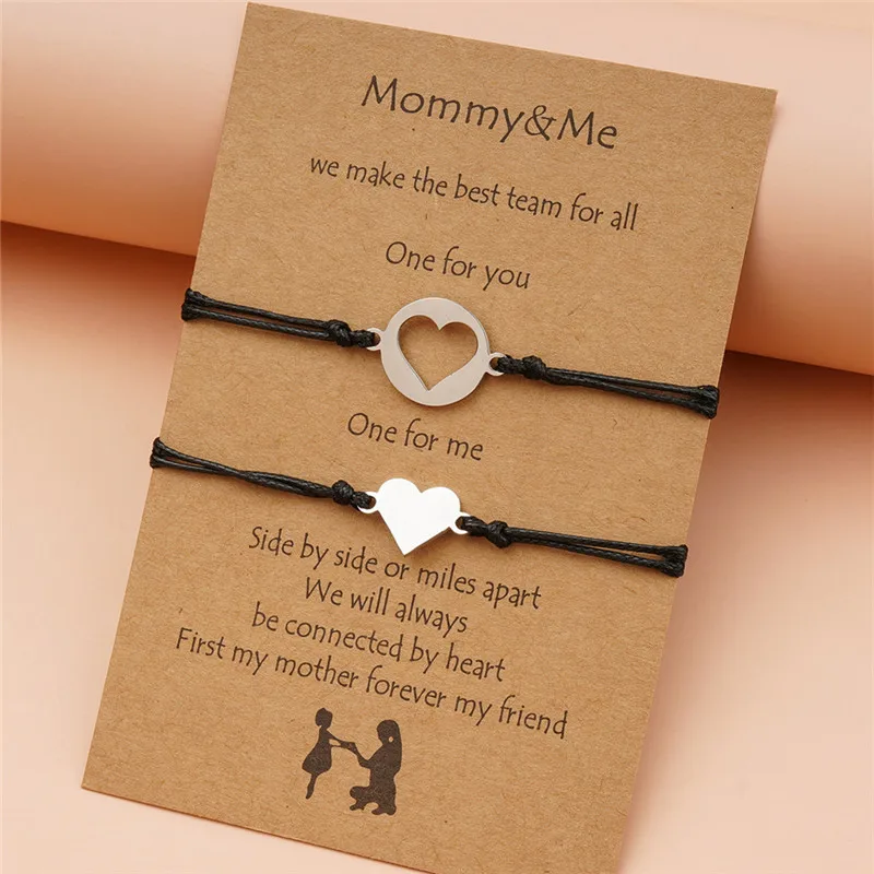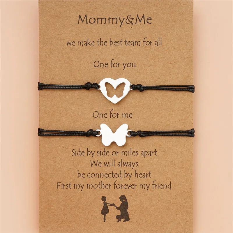 2 шт.компл. браслет для карт Mommy Me подарок на день матери ажурный браслет с сердечками и бабочками Регулируемая цепочка модные ювелирные изделия