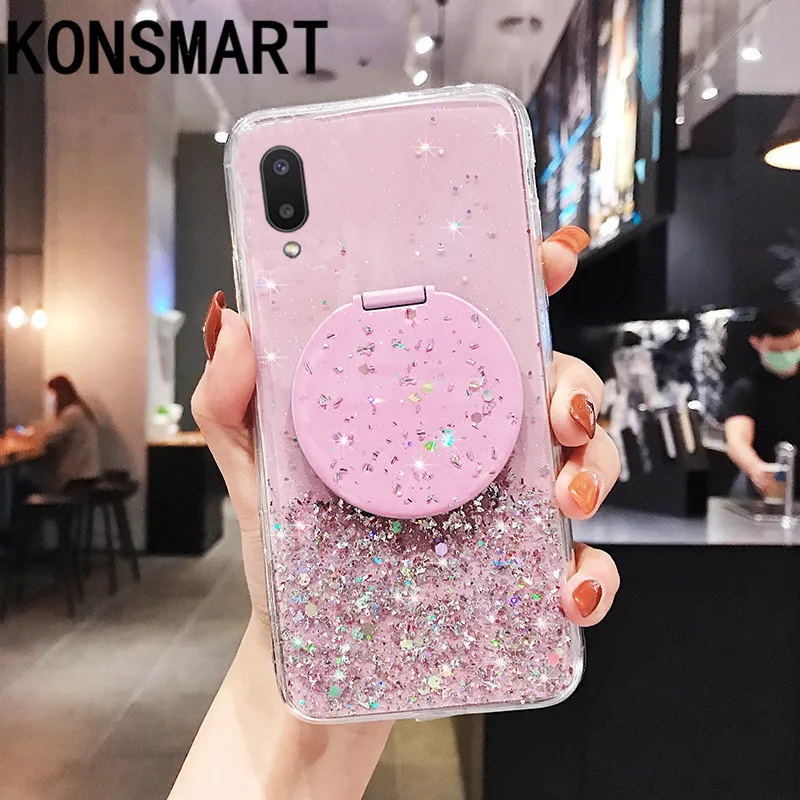 Для Samsung A02 чехол Блестящий Звездный Прозрачный чехол для телефона Galaxy A02 2021 роскошный силиконовый мягкий макияж зеркальная подставка задняя крышка