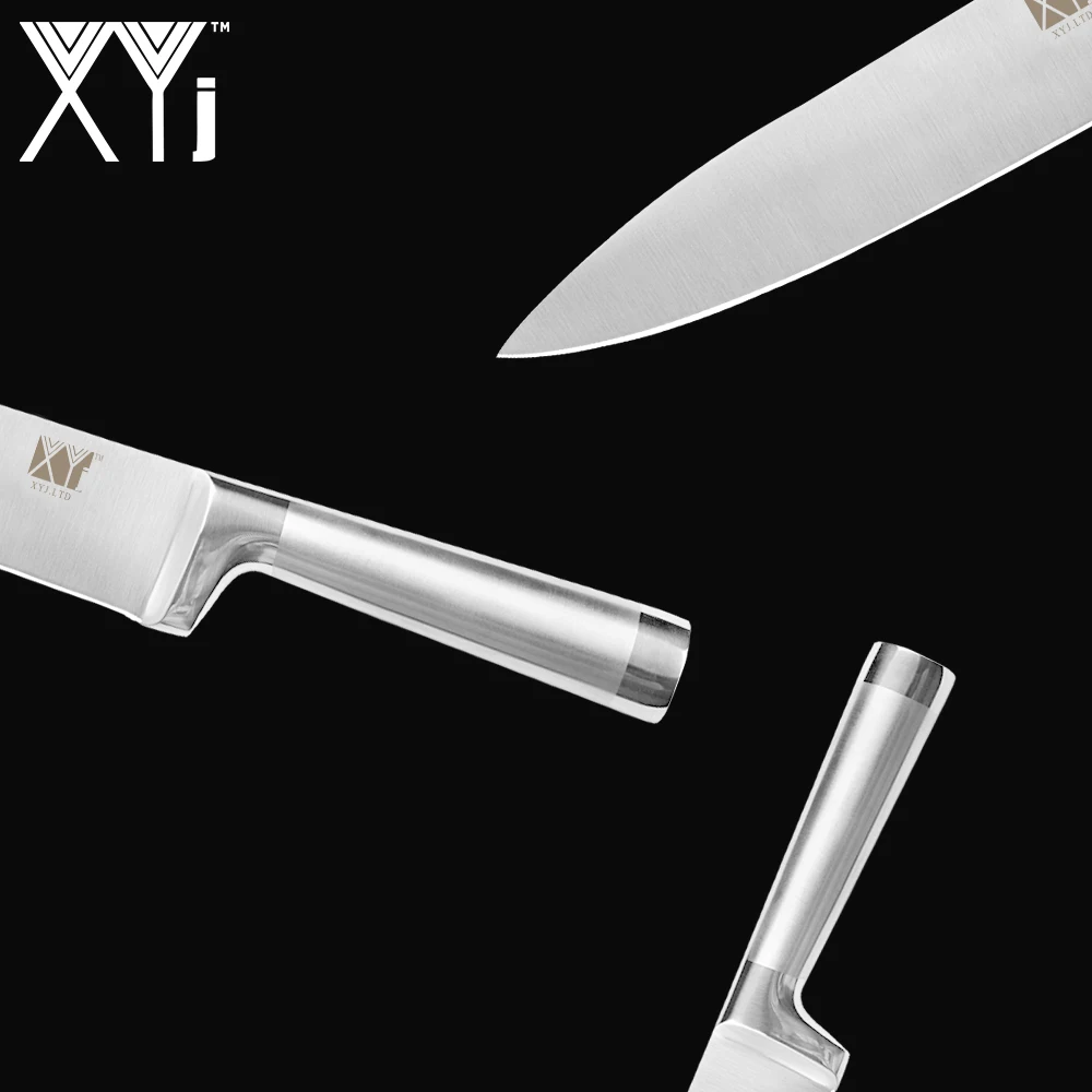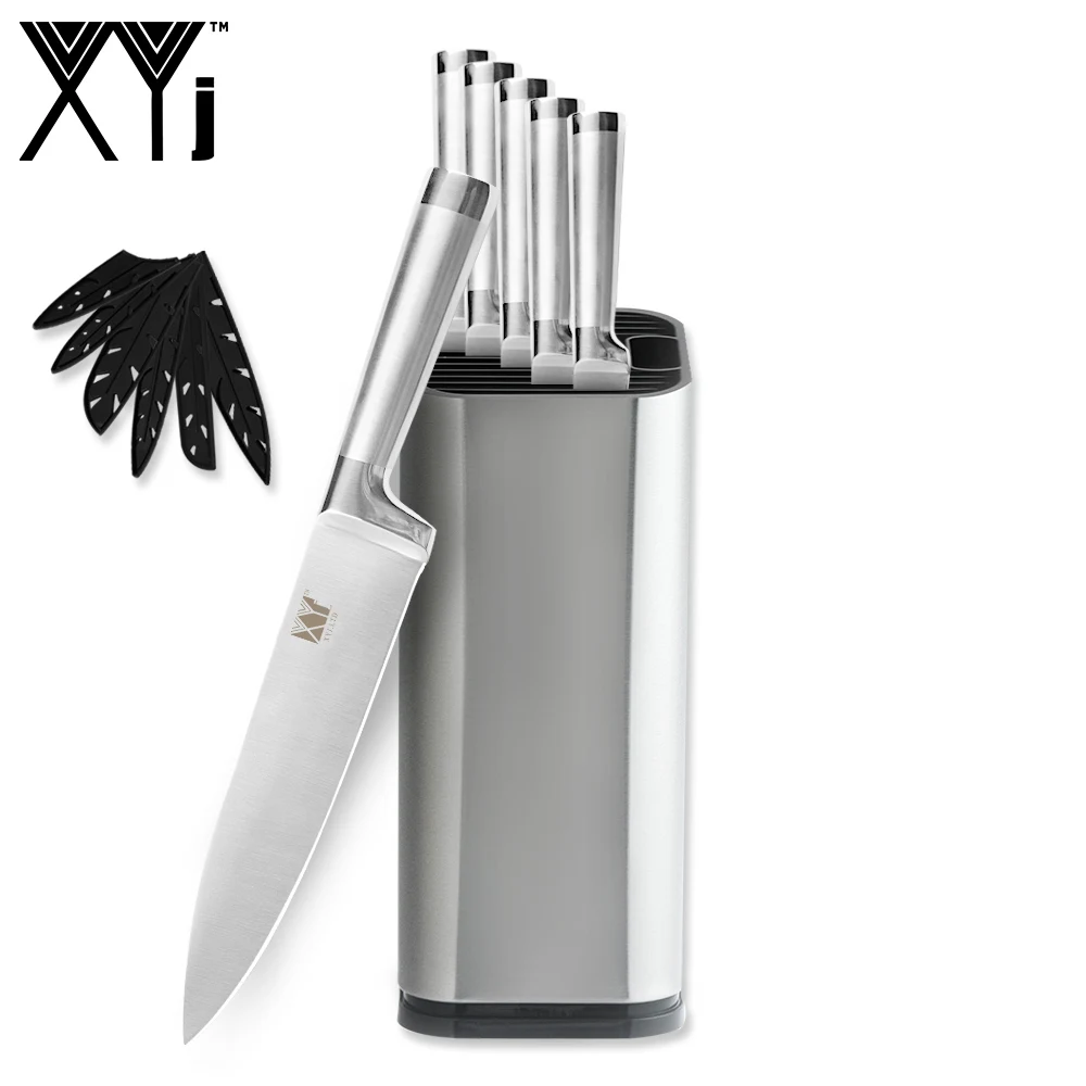 XYj Нержавеющаясталь Ножи Комплект Горячая Распродажа прямая ручка Кухня Ножи 8 "7" 6 "5" 3,5 "и Ножи держатель бытовой набор столовых приборов