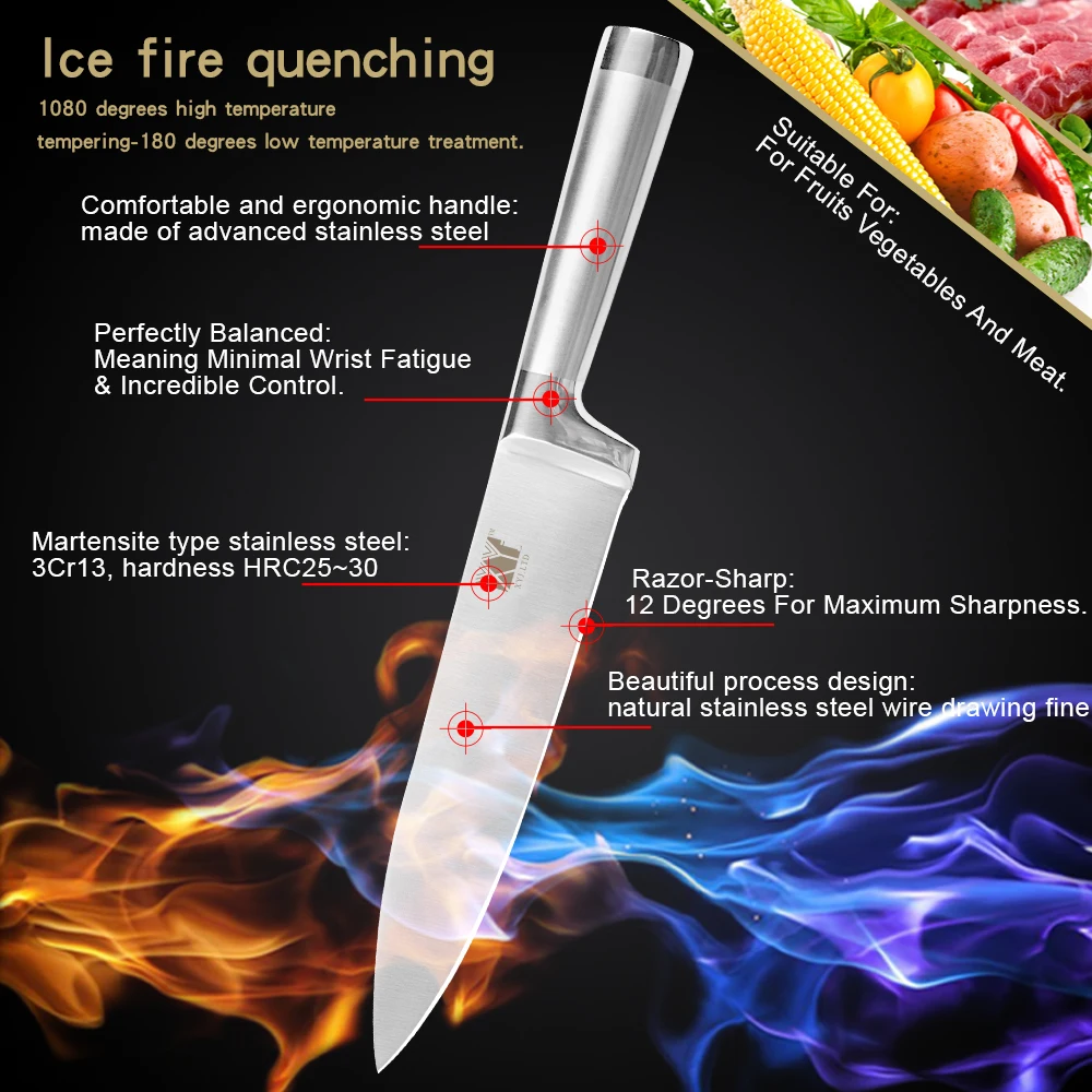 Набор кухонных ножей из нержавеющей стали XYj, 8 дюймов, с градиент...