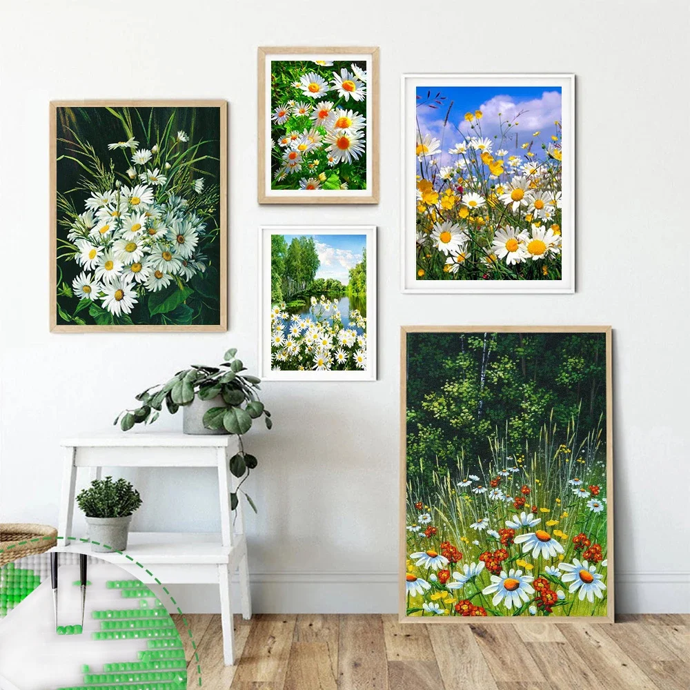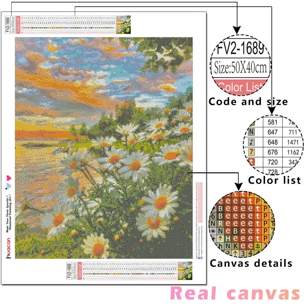 Набор для вышивки стразами HUACAN, алмазная 5D живопись, цветы, ромашки, вышивка крестиком, настенные наклейки для домашнего творчества
