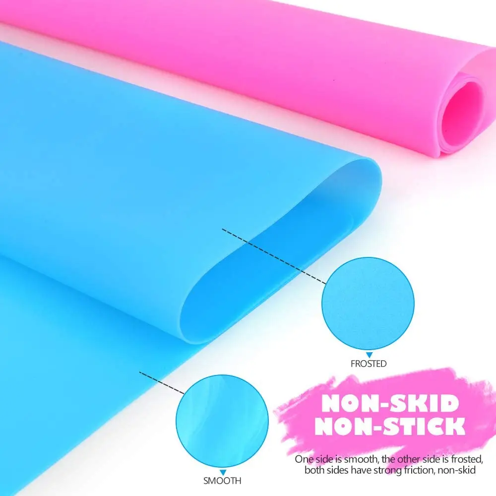 Потрясающие коврики для рукоделия: около 40*30 см, достаточно большие, чтобы избежать беспорядка. Доступно в двух цветах: синий и розово-красный. Простой, но универсальный, красивый. Мягкий и режущий. Материал премиум-класса: Изготовлен из высококачественного силикона, без запаха, антипригарный, нескользящий, термостойкий, не выцветает, долговечный, для сбора беспорядка и защиты поверхности, отличный помощник для поделок своими руками. Защитите свой стол: Соберите набор инструментов для литья, таких как палочки для смешивания, Переводные пипетки, пинцеты и т. д., а также Защитите свой стол от воды, смолы, клея, царапин, тепла, жира и т. д. Применение: используется в качестве коврика для поделок, форм для литья ювелирных изделий и других инструментов и материалов «сделай сам», а также коврика для детской посуды, коврика для выпечки, помадки, протектора столешницы и т. д. Легко чистить и хранить: легко чистить теплой мыльной водой, можно сразу же удалить пролитую смолу/клей/затвердевание краски. Гибкий и легкий, легко складывается или сворачивается, занимает минимум места и удобен в переноске.