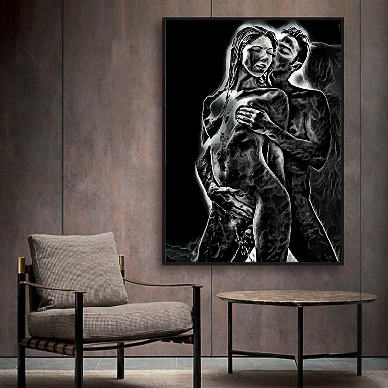 Абстрактная Обнаженная сексуальная мужская женщина Искусственная любовь черно-белая Картина на холсте Декор для спальни ванной картины