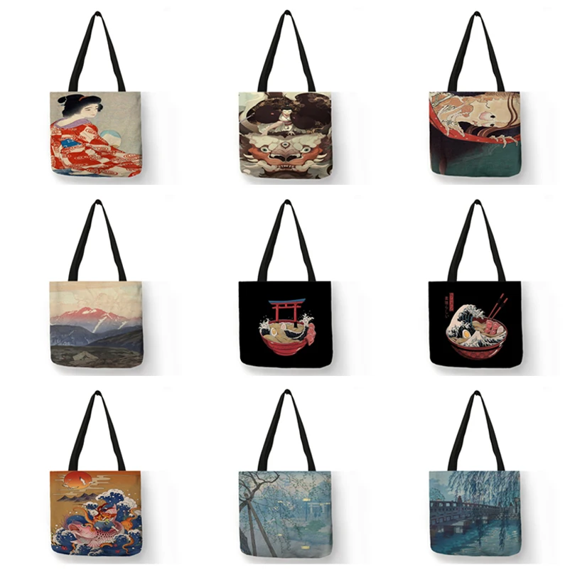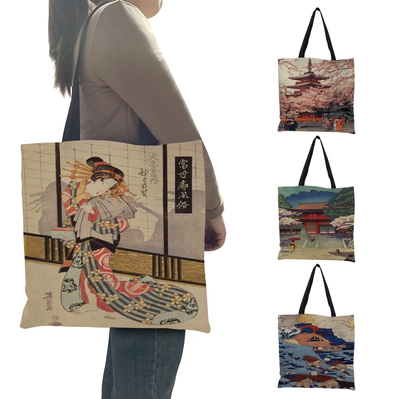2021 Женская Дамская Сумка-тоут, Классическая сумочка с принтом Кабуки в японском стиле с изображением горы Фуджи, пейзажа, волны, большая сумка для покупок для супермаркета