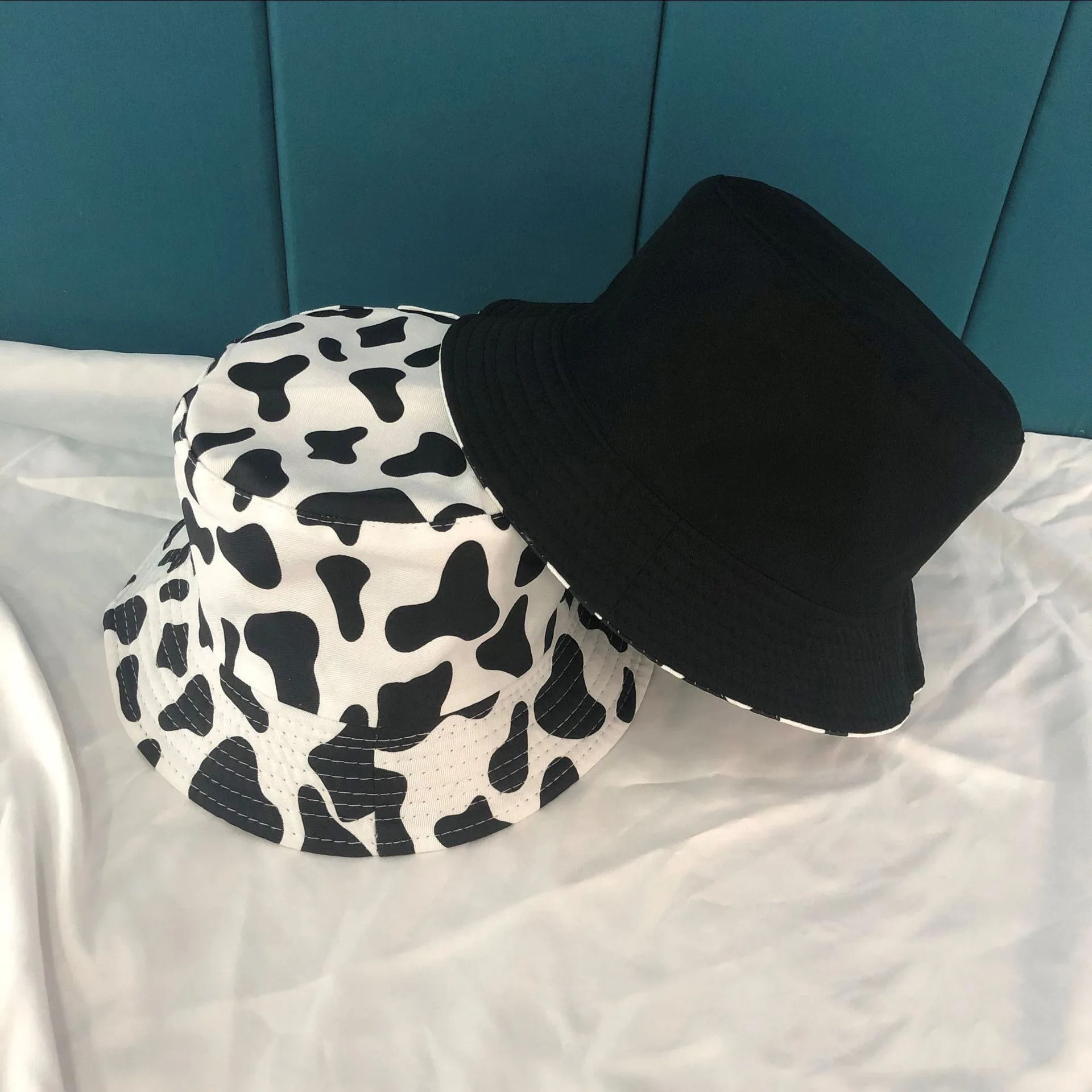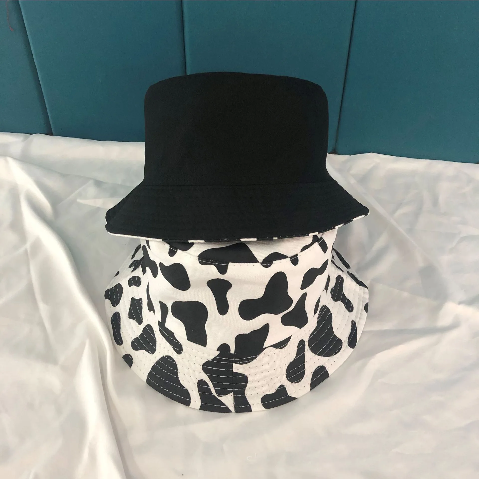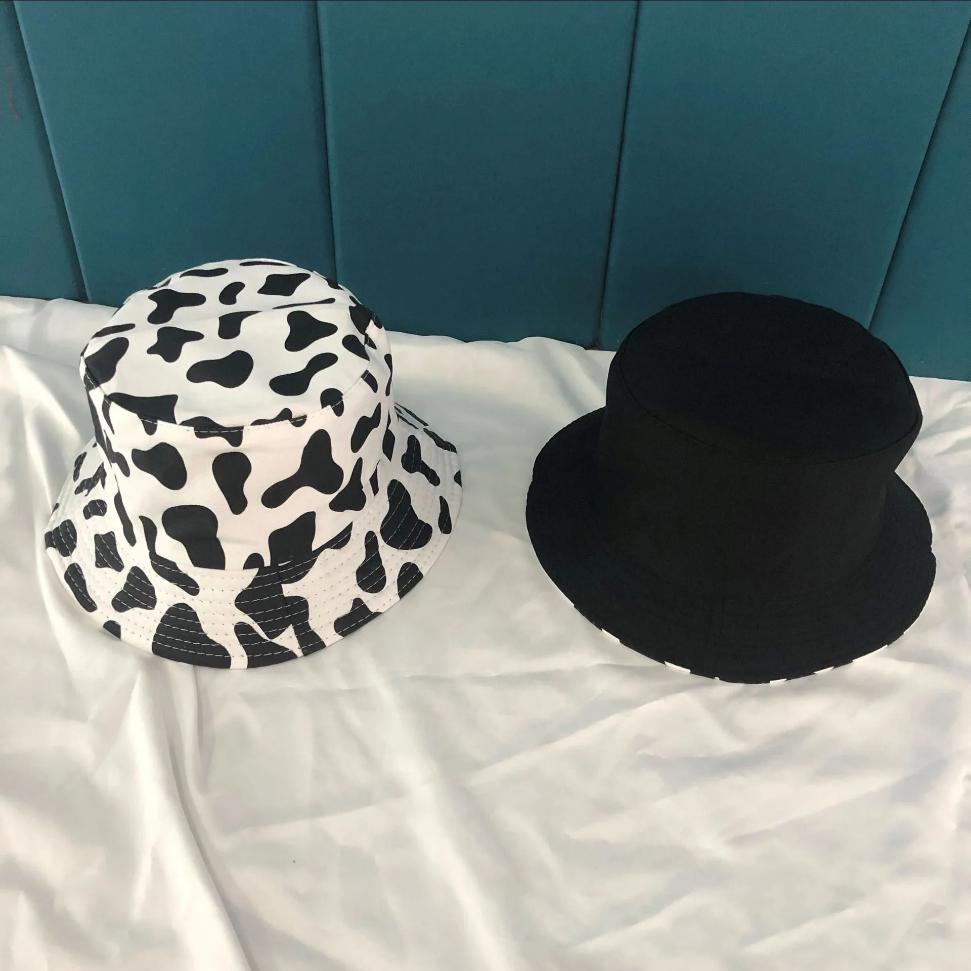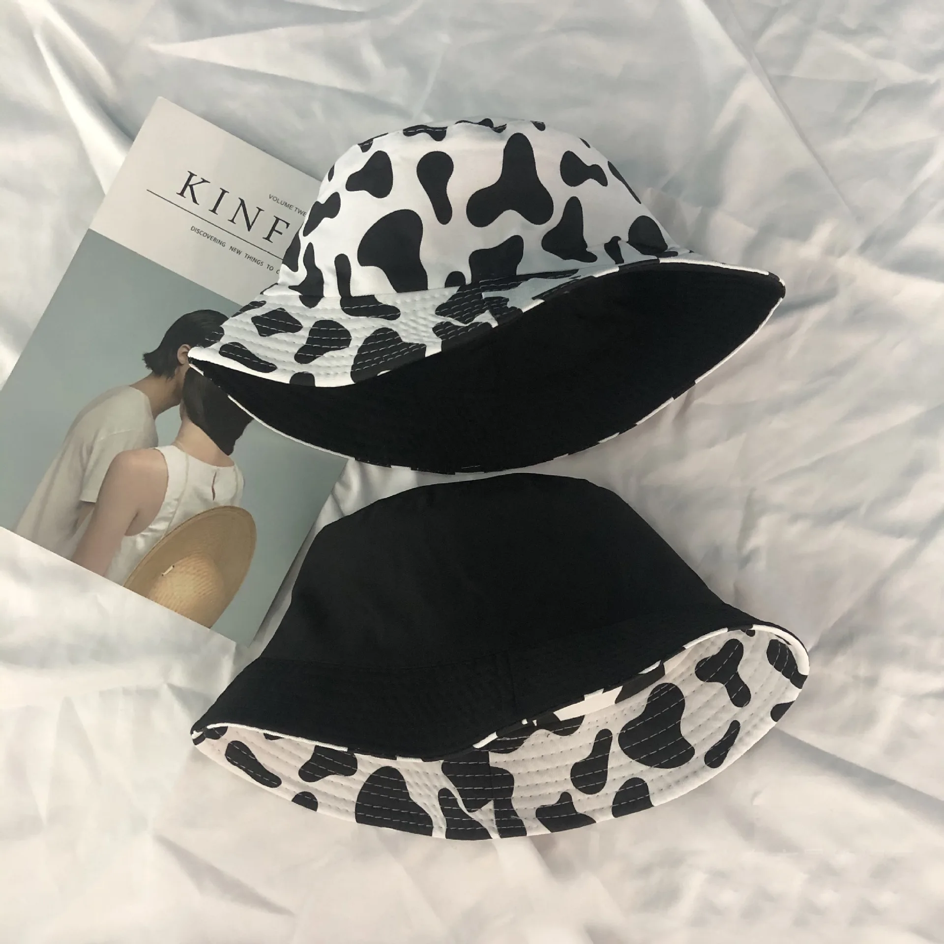 Панама женская с коровьим принтом, двусторонняя пляжная шапка, цвет белыйчерный, летняя