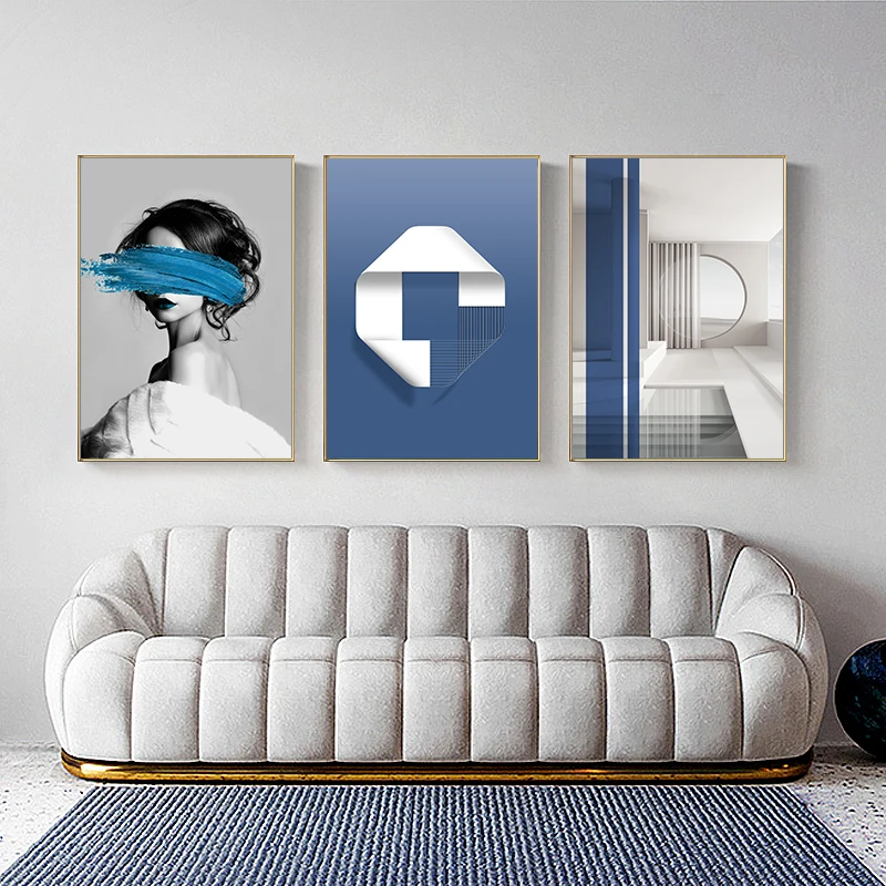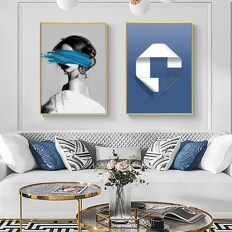 Синий абстрактный постер женщины, Современная Геометрическая живопись, настенный художественный постер, печать, декоративная картина для гостиной, украшение для дома