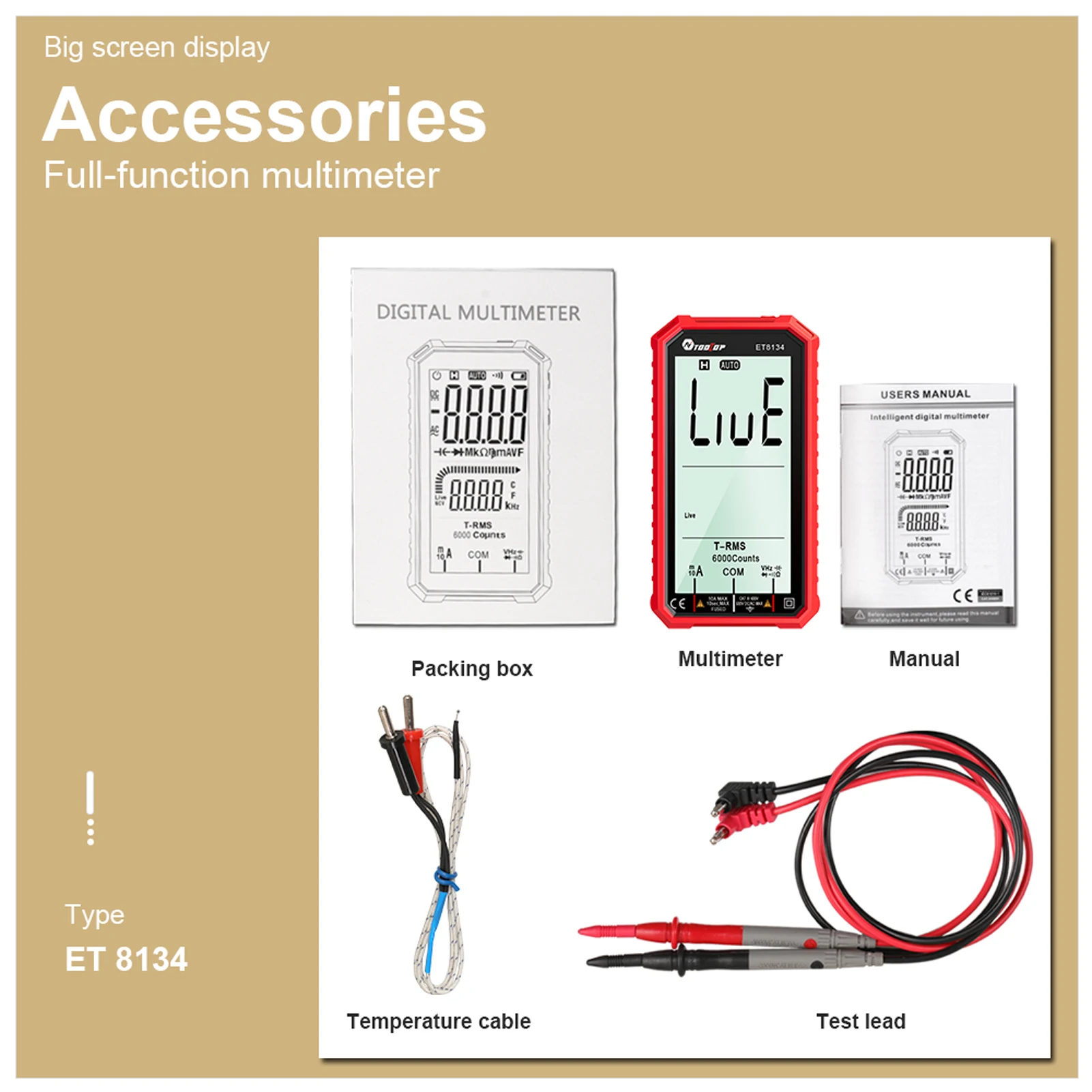 Цифровой умный тестер мультиметр-транзистор TOOLTOP ET8134, 600 отсчетов, True RMS, автоматический Электрический измеритель емкости и сопротивления