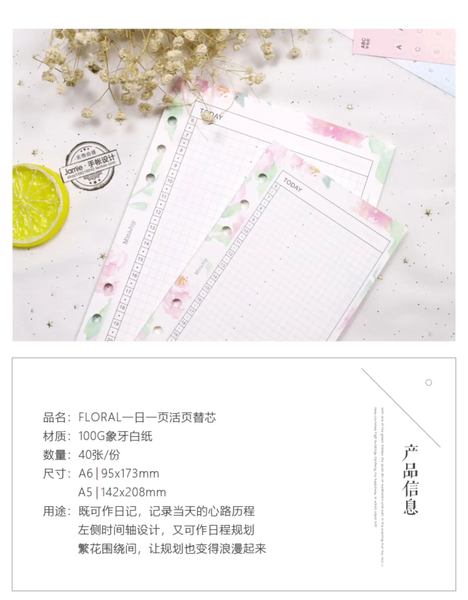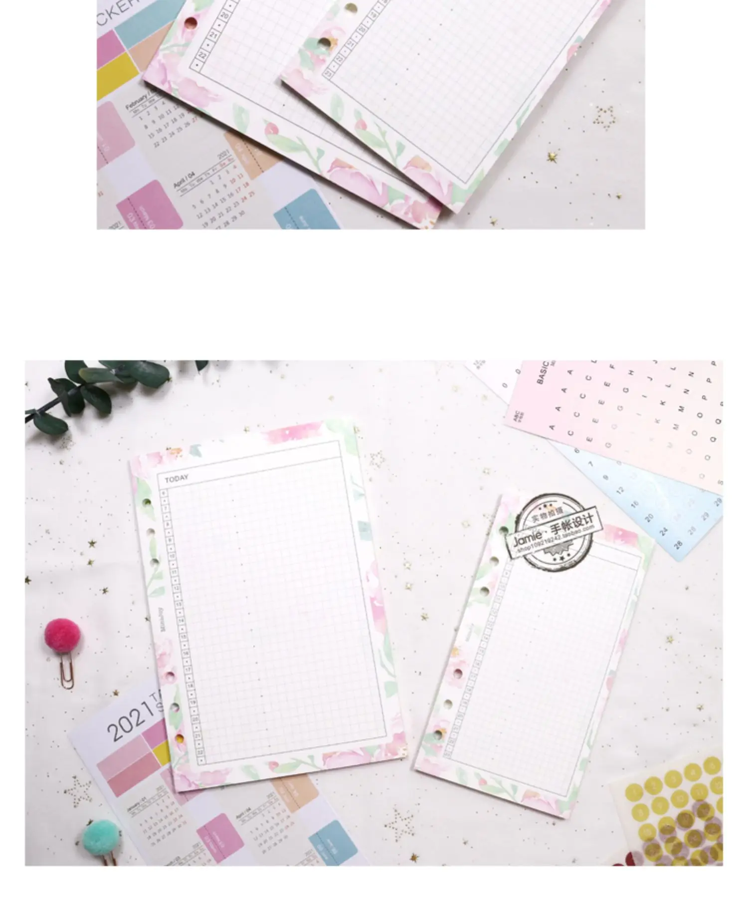 Сменная бумага для записей, А6, А5, на 6 кольцах, с вкладными листами, кавайные канцелярские школьные