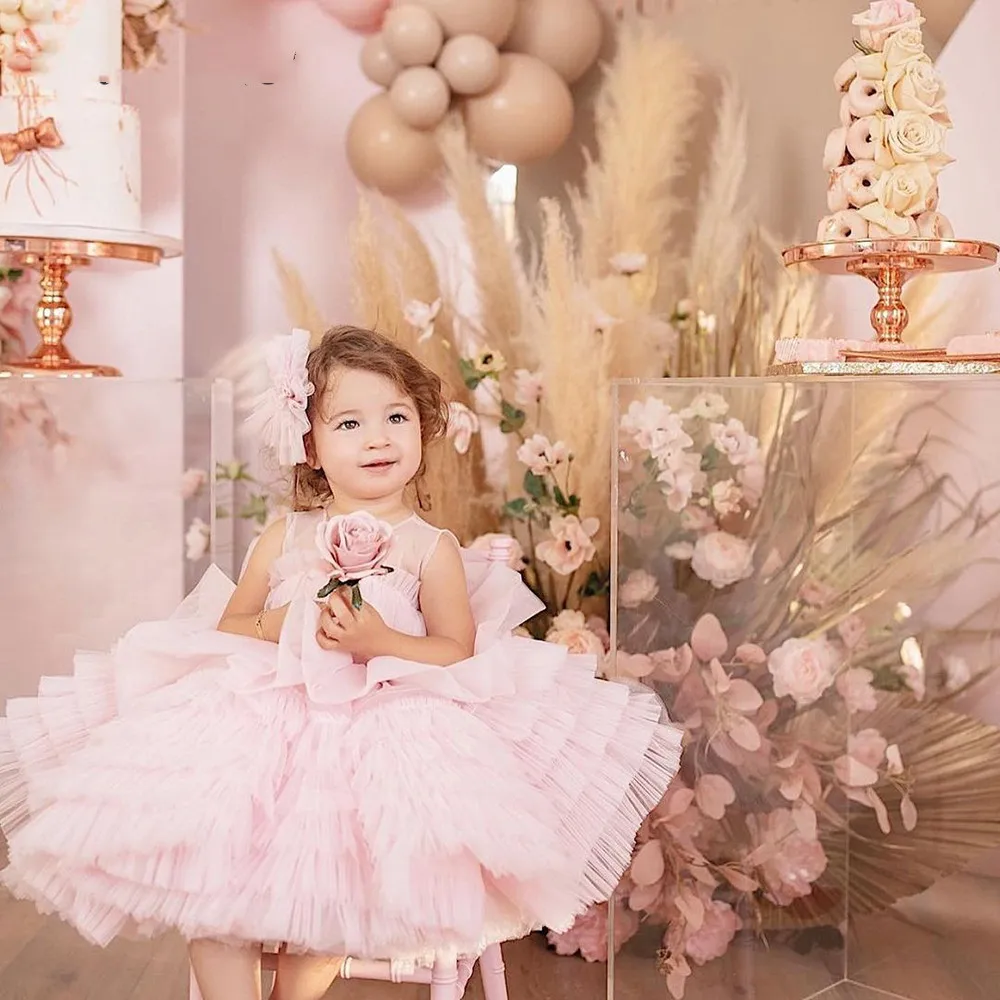 Розовые платья для девочек с цветочным принтом и кружевной аппликацией с поясом, бальное платье на заказ, платье для первого причастия для девочек, элегантное женское платье