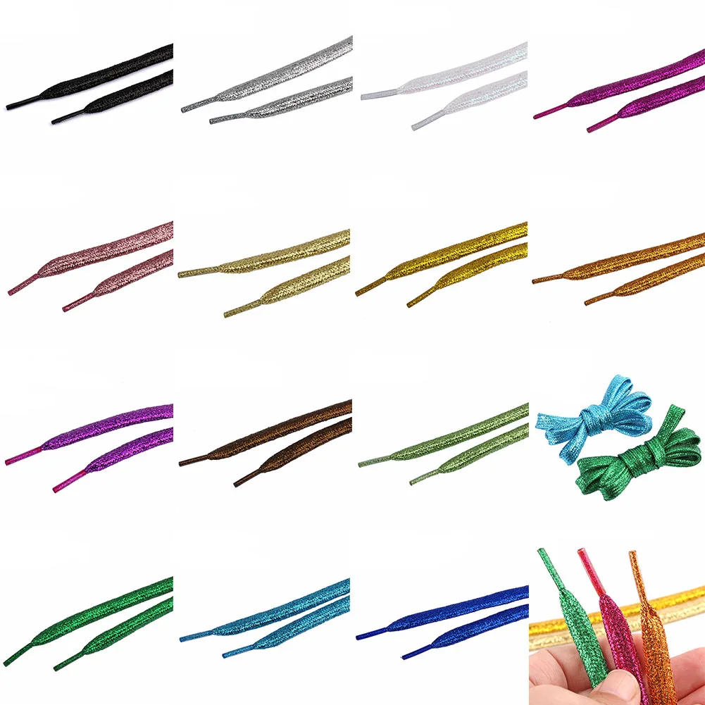1 пара блестящих шнурков на плоской подошве 120 см; Блестящие блестящие цвета; Мерцающие туфли на шнурках