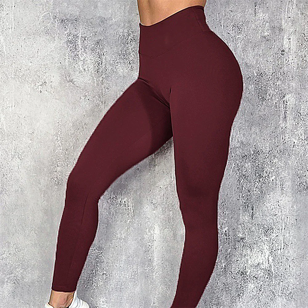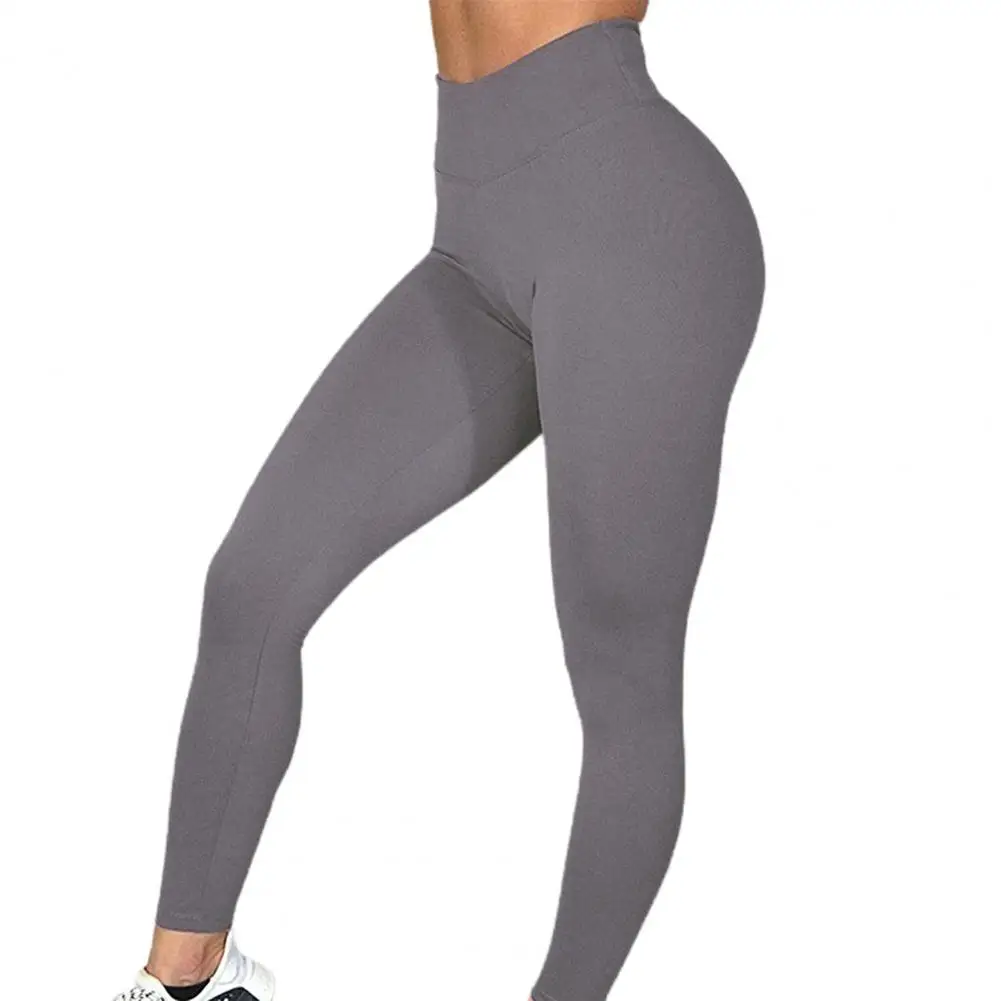 Женские штаны для йоги с высокой талией, облегающие пикантные длинные леггинсы с эффектом пуш-ап, леггинсы для фитнеса, однотонные штаны для тренировок, брюки, колготки