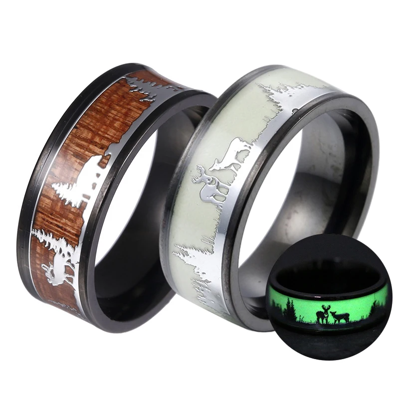 2020 черный Вольфрам Охота кольцо обручальное кольцо дерева инкрустированные оленьих рогов силуэт изысканный светящиеся украшения вечерние карнавальный костюм подарок