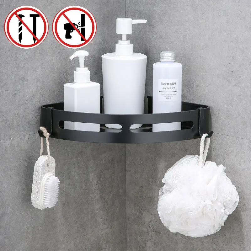 Это практичная полка с черными внешними и съемными крючками. Он стильный и универсальный. Он может быть установлен в углу и может сэкономить больше места. Этот дизайн только для того, чтобы обеспечить больше удобства для пользователей. Его можно использовать во многих местах, таких как кухни, ванные комнаты, туалеты, проходы, балконы, раковины и т. д.-Это может сэкономить более 80% пространства.