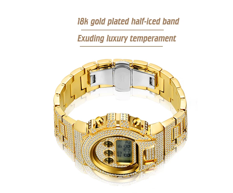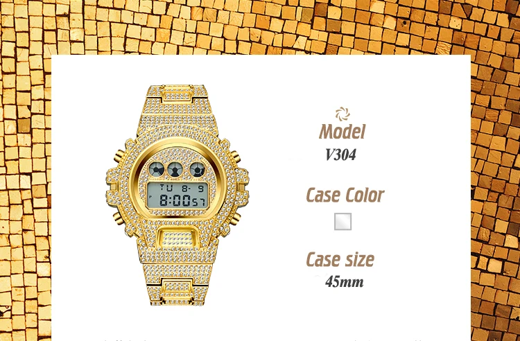 Часы наручные мужские цифровые со стразами, роскошные светодиодные ...